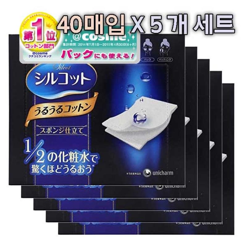 Ватные диски Unicharm Shirucotto Uruuru (40 листов) х 5 комплектов