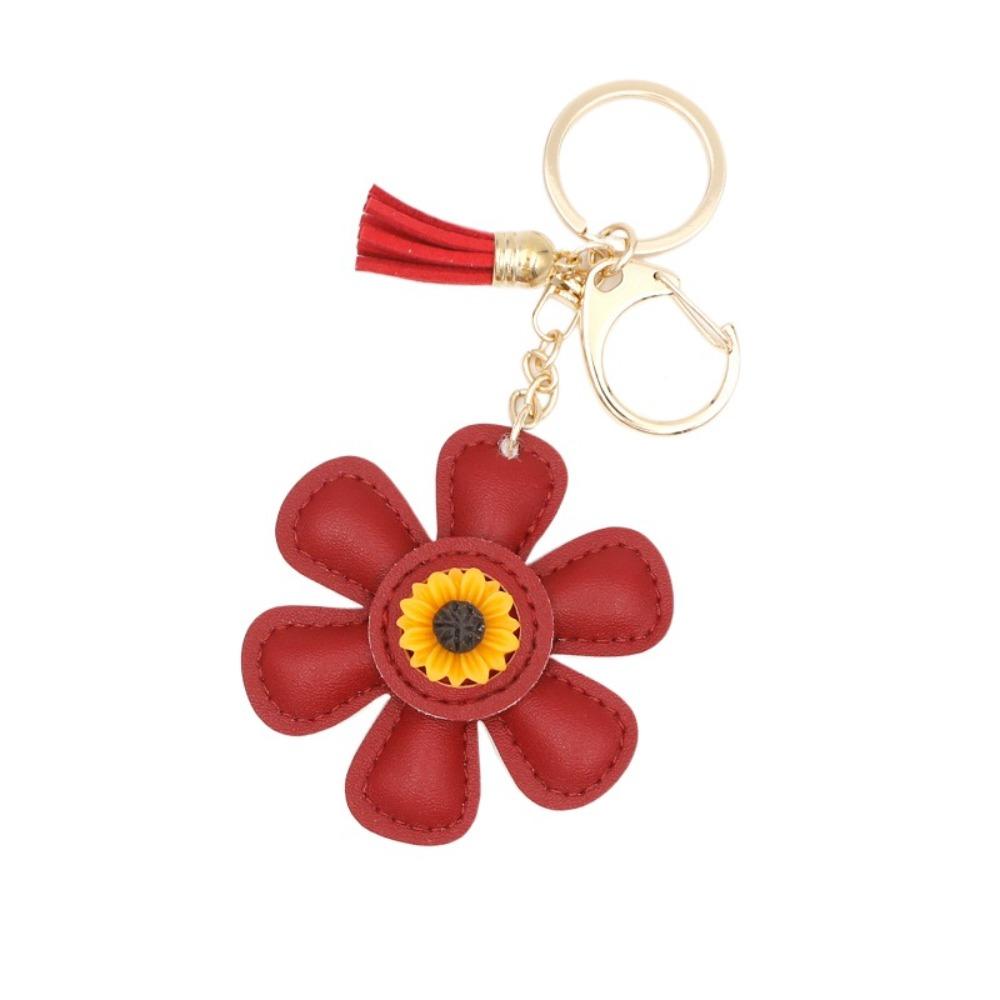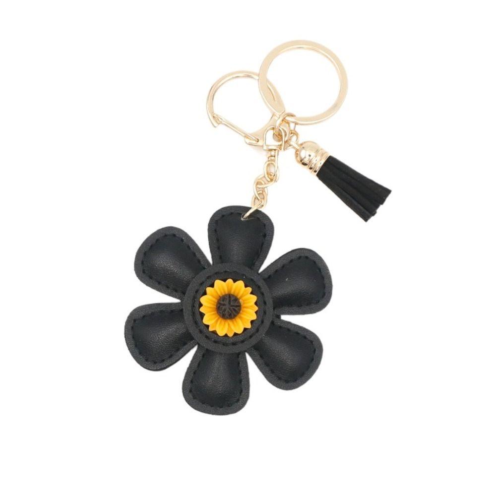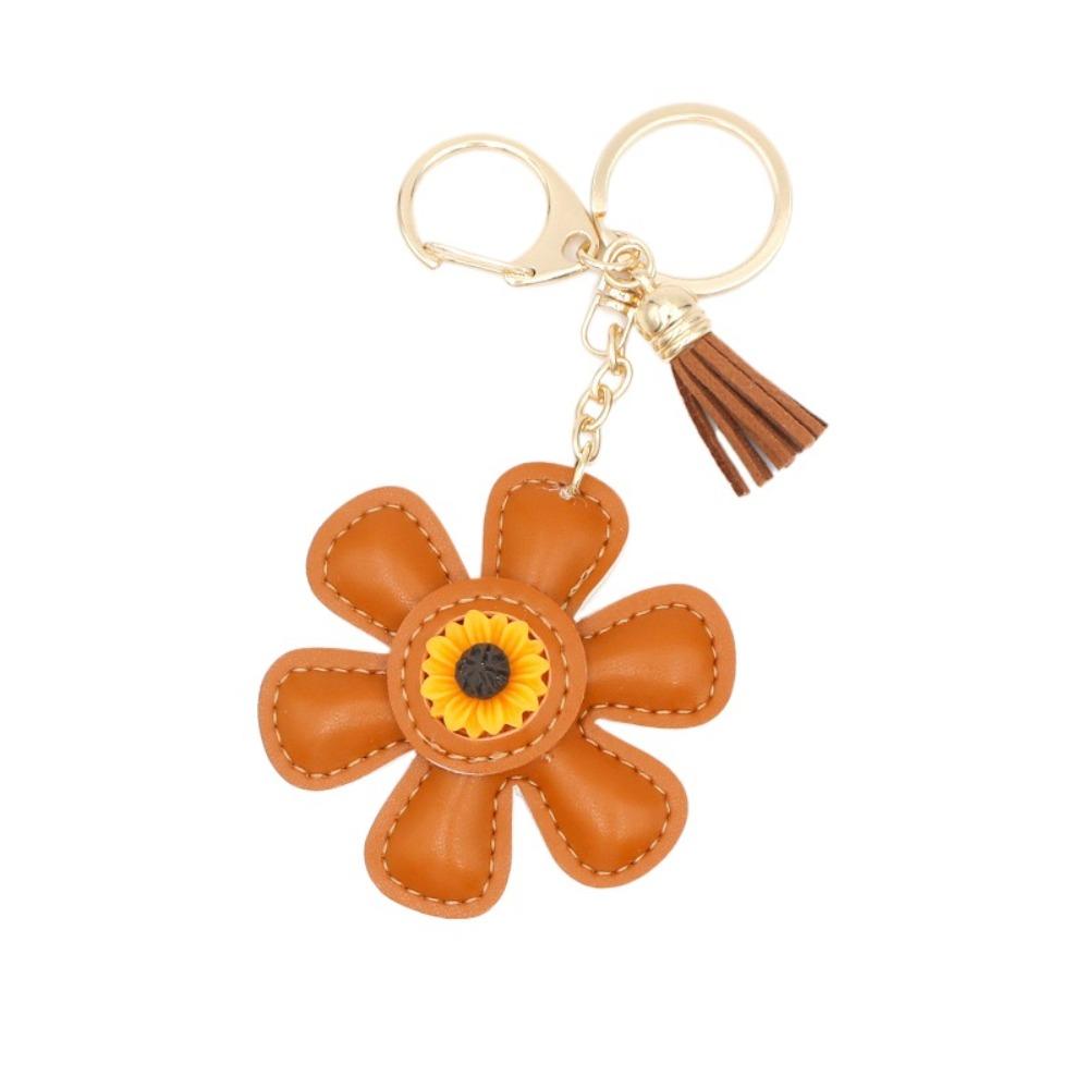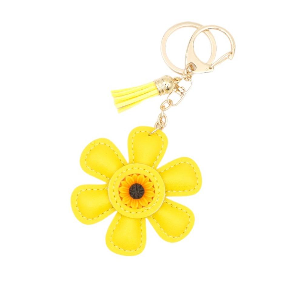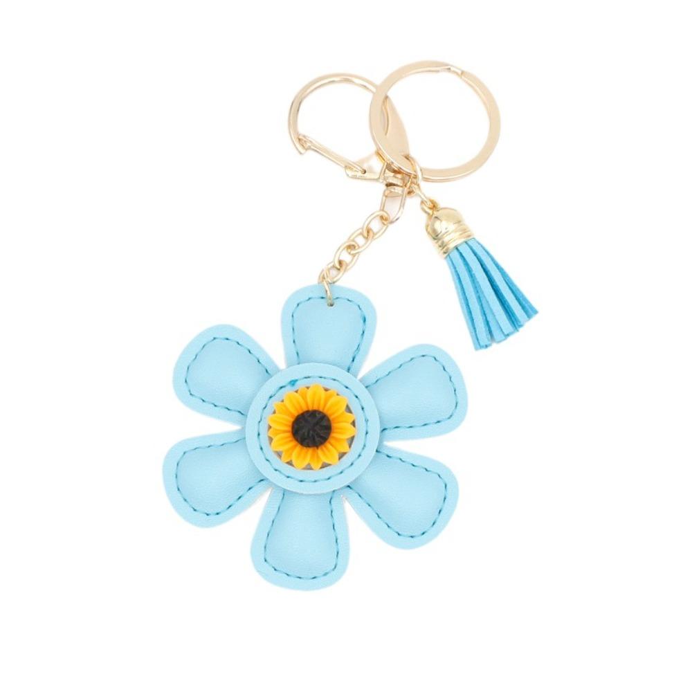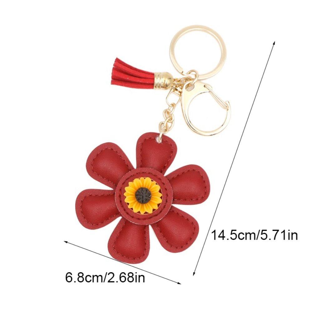 Charm Sunflower Keychain Tassels Flower Bag Pendant Car Keyring PU Leather Key Ring Men