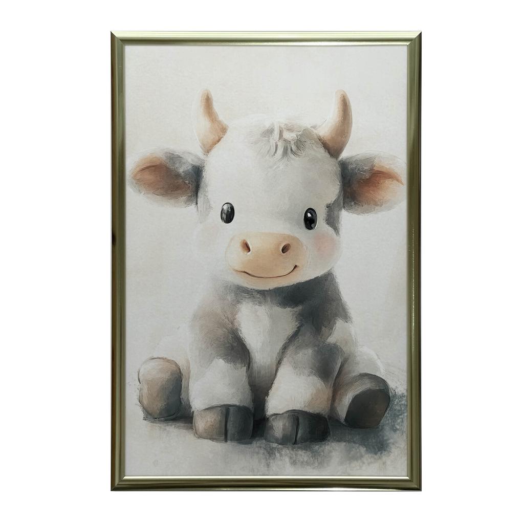 1x Urocza krowa, 30x40 cm, rama drewniana ciemny brąz, papier matowy 230 gsm