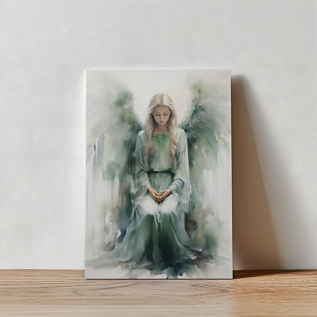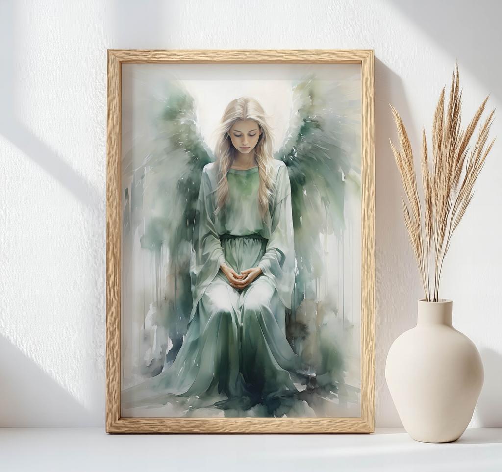 Wyobraź sobie, że wchodzisz do swojego salonu, a na ścianie wisi dzieło sztuki, które nie tylko przyciąga wzrok, ale również emanuje spokojem i harmonią. Plakat 'Światło Szmaragdowego Anioła' to połączenie elegancji i mistycyzmu, które przenosi Cię do wymiaru, w którym każdy dzień zaczyna się od poczucia wewnętrznej równowagi. Złota aluminiowa rama i subtelne, matowe wykończenie papieru 230 gsm wprowadzają do Twojego wnętrza niepowtarzalną atmosferę luksusu. Idealny do przestrzeni, które stawiają na elegancję i spokój – poczuj magię na co dzień.