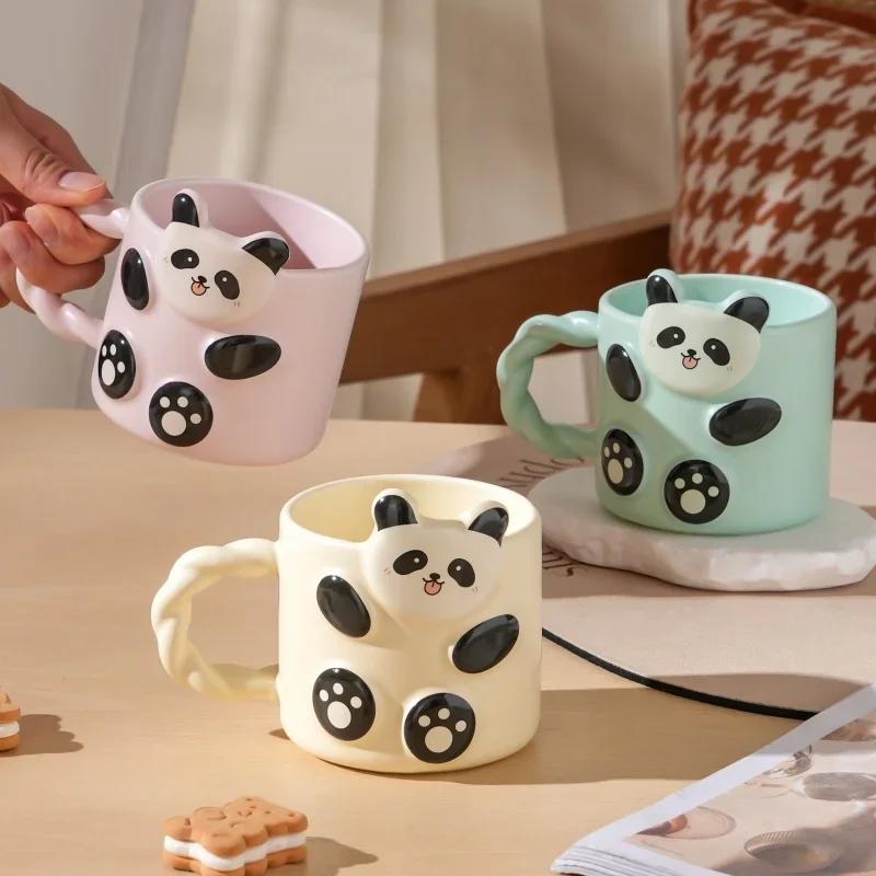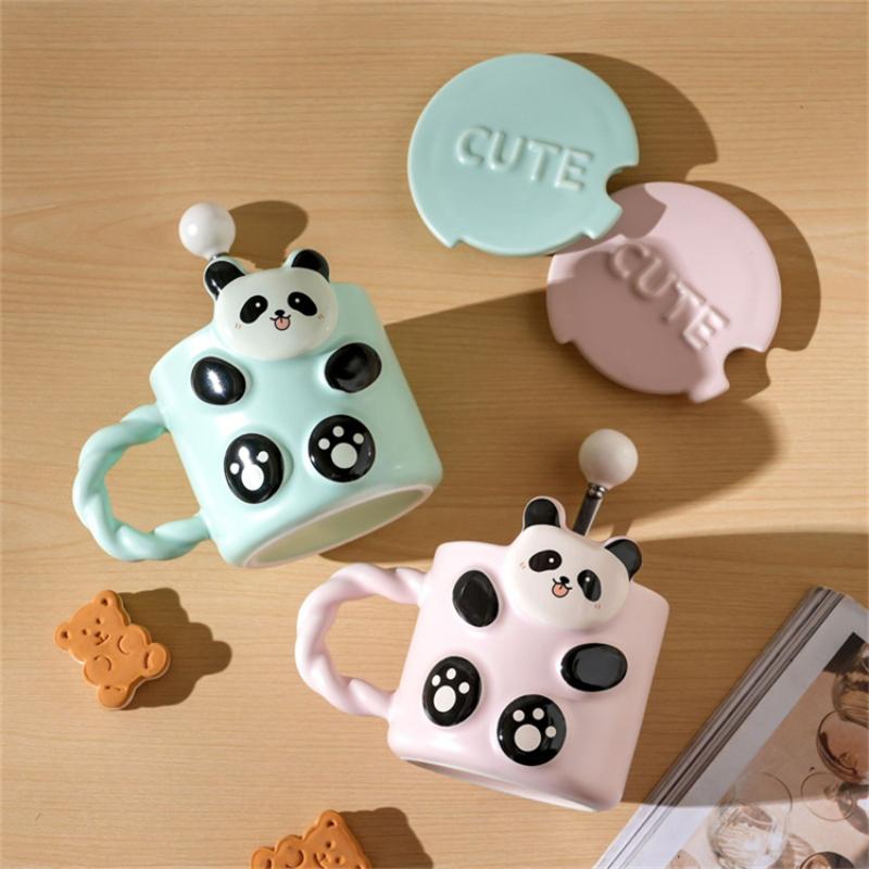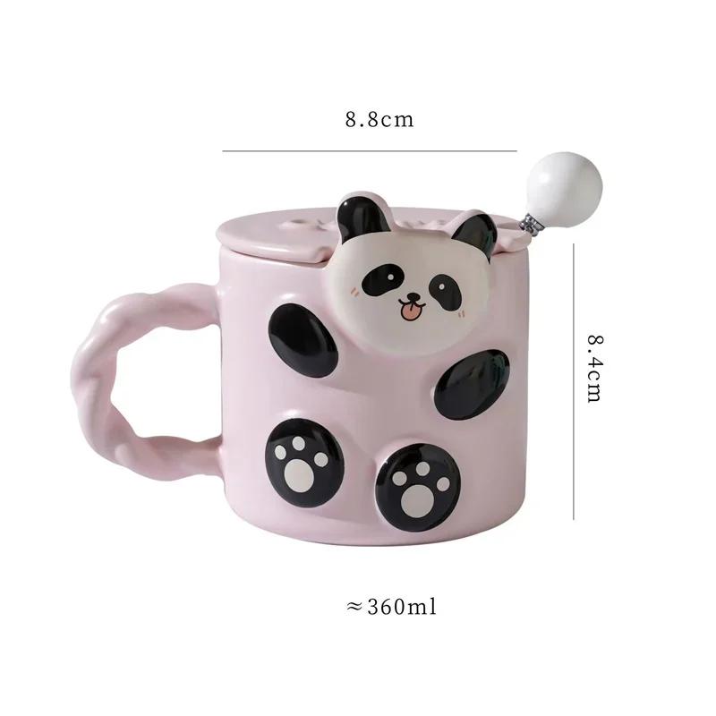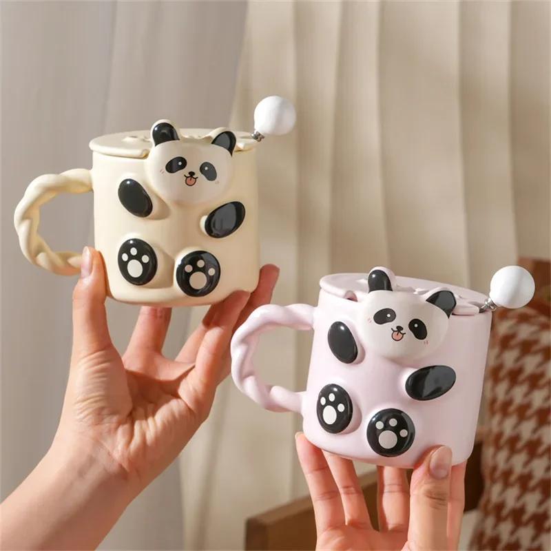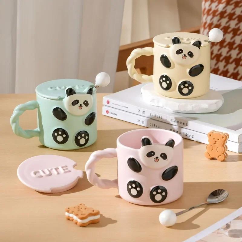 Керамическая кружка Стереоскопический узор панды с крышкой и ложкой Кружка для завтрака, молока, чая, кофе, сока, йогурта Офисная, домашняя чашка для воды