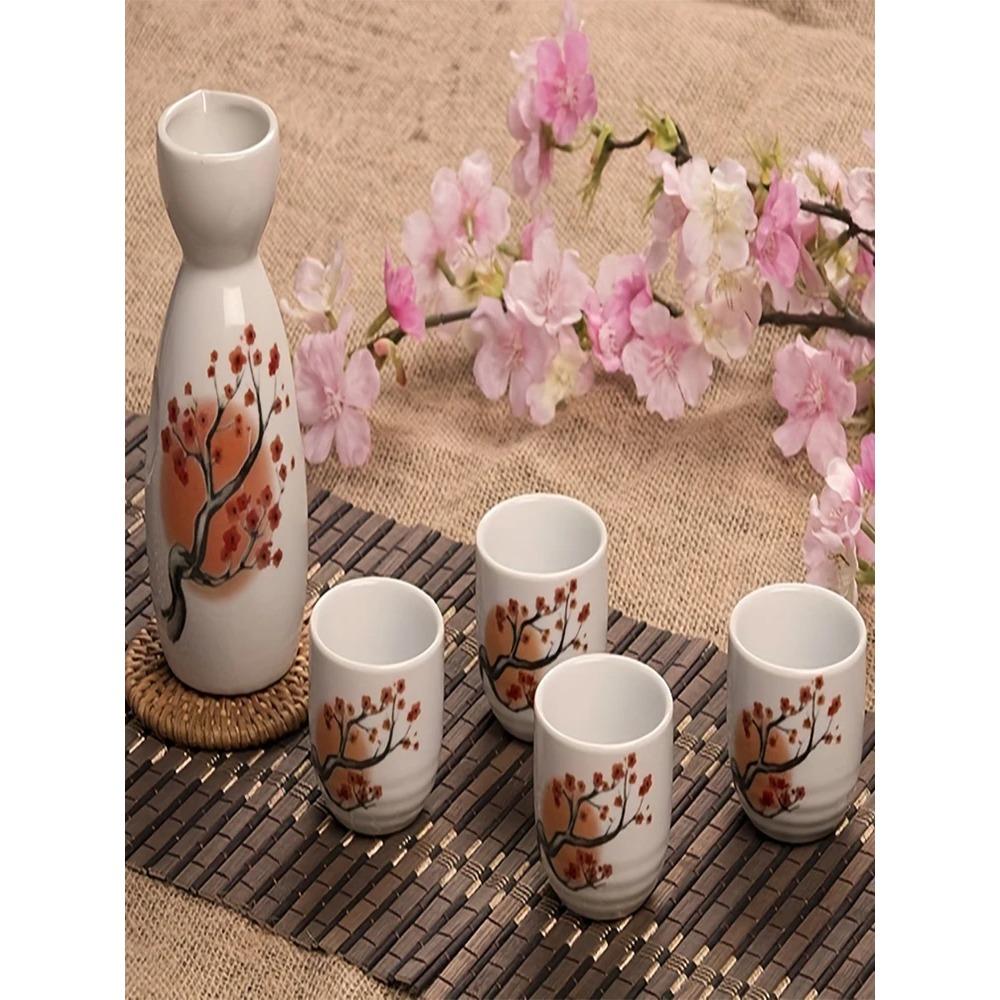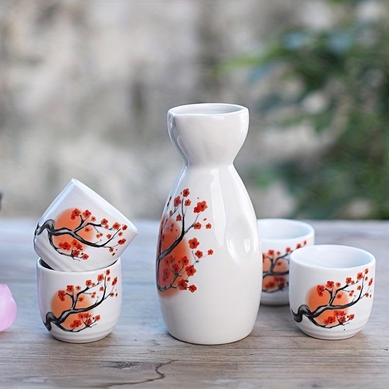 Керамический барный набор, японский набор для сакэ с четырьмя винными чашками, расписанный вручную в стиле сафлорового фарфора, подарочная керамика