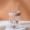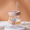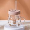 1 шт. 500 мл Мультяшная стеклянная чашка с медведем с крышкой и соломинкой, кружка для воды из высокоборосиликатного стекла с ручкой, стаканы для холодного кофе, стаканы для питья