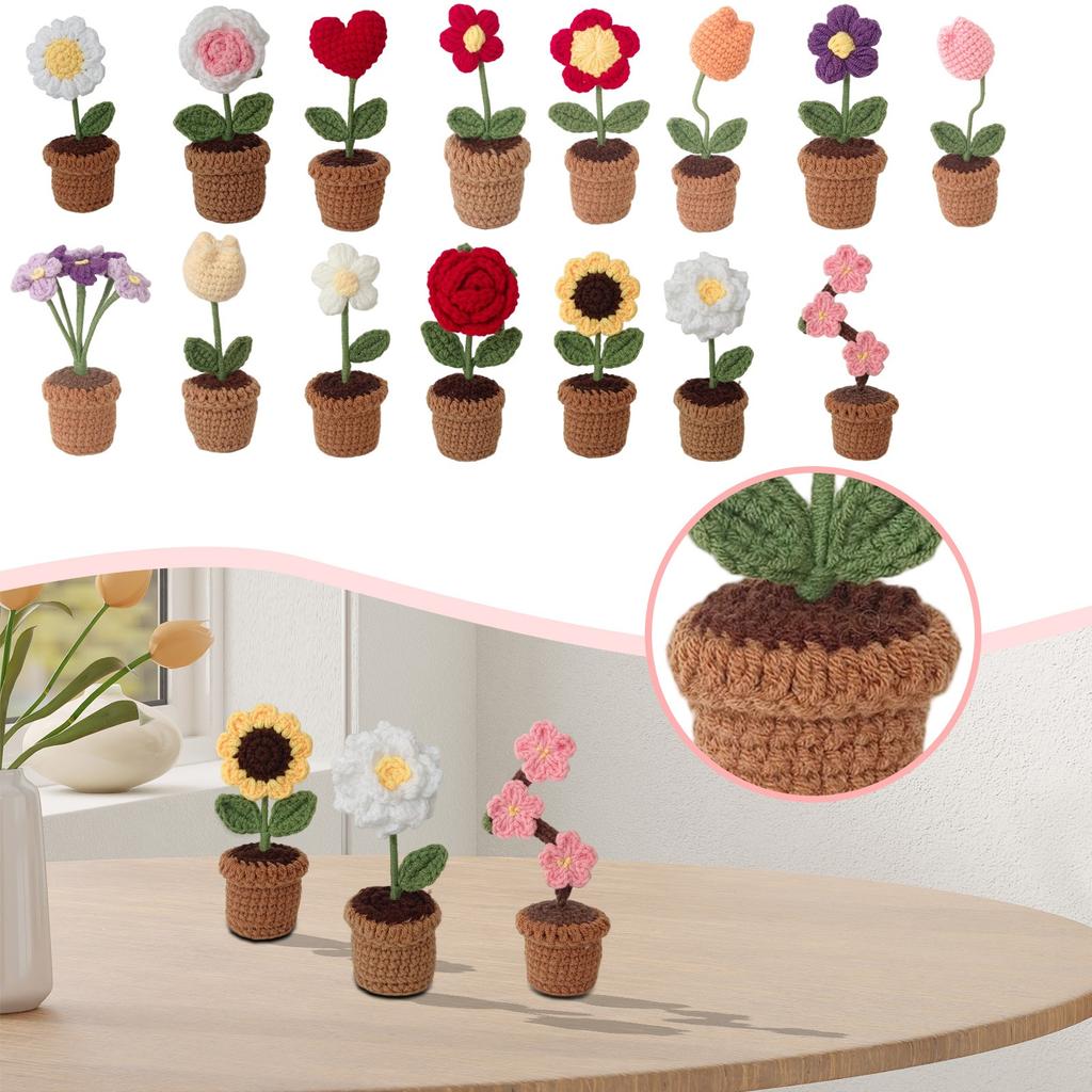 Вязаный крючком искусственный цветок в горшке, милый креативный декоративный подарок для дома