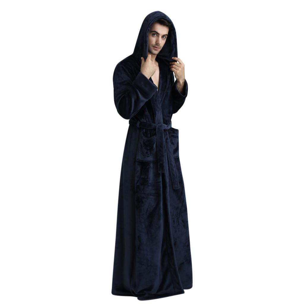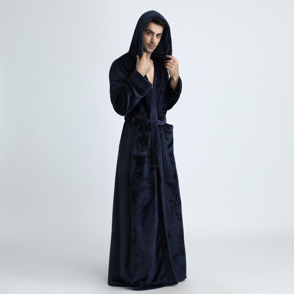 Мужской утепленный коралловый флисовый халат с капюшоном, халат, пижама, одежда для сна с карманом
