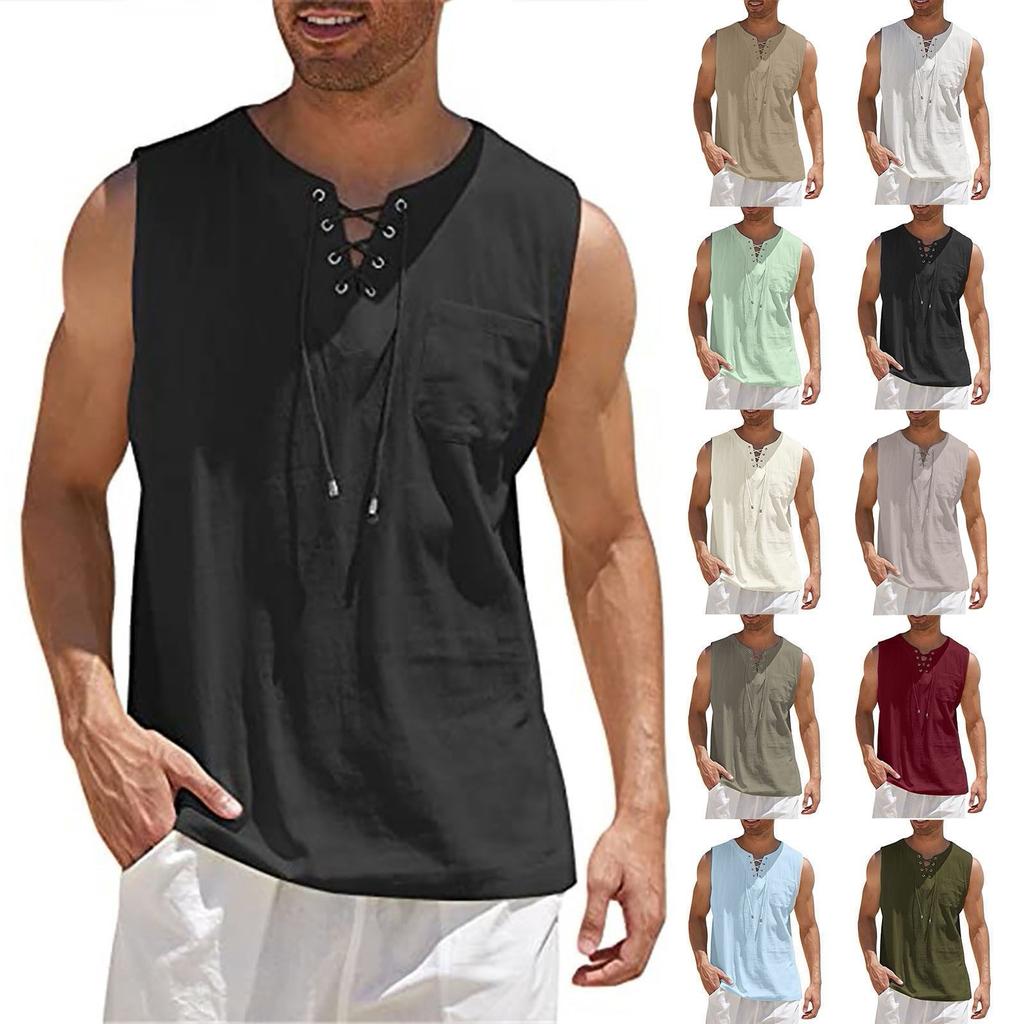 Мужские повседневные свободные хлопковые льняные рубашки, цветная рубашка, блузка, жилет без рукавов, пляжные рубашки, топы