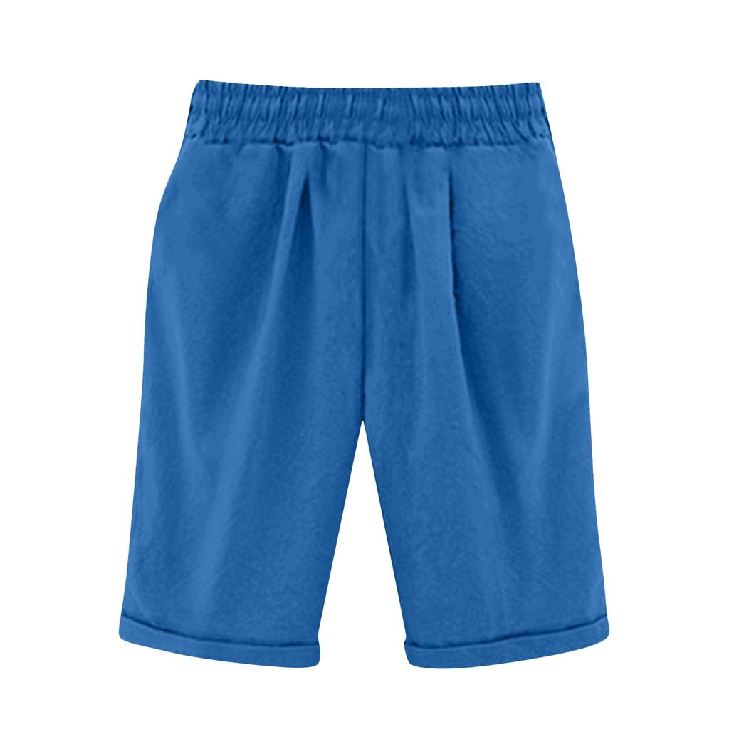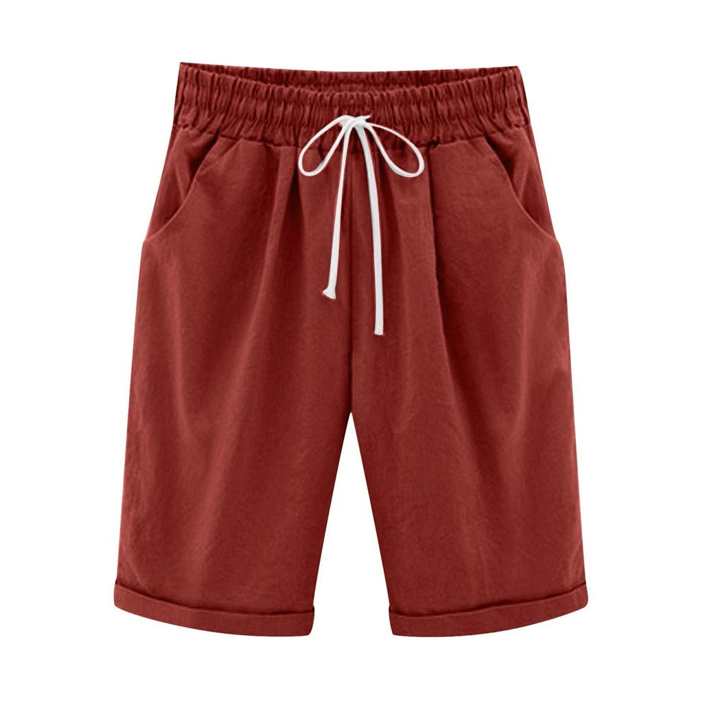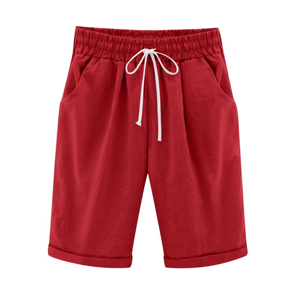 Женские повседневные свободные пляжные брюки, однотонные свободные повседневные пятые брюки, льняные шорты с карманами