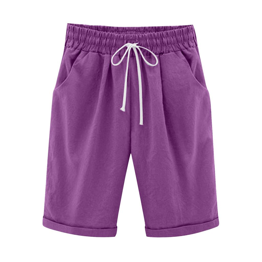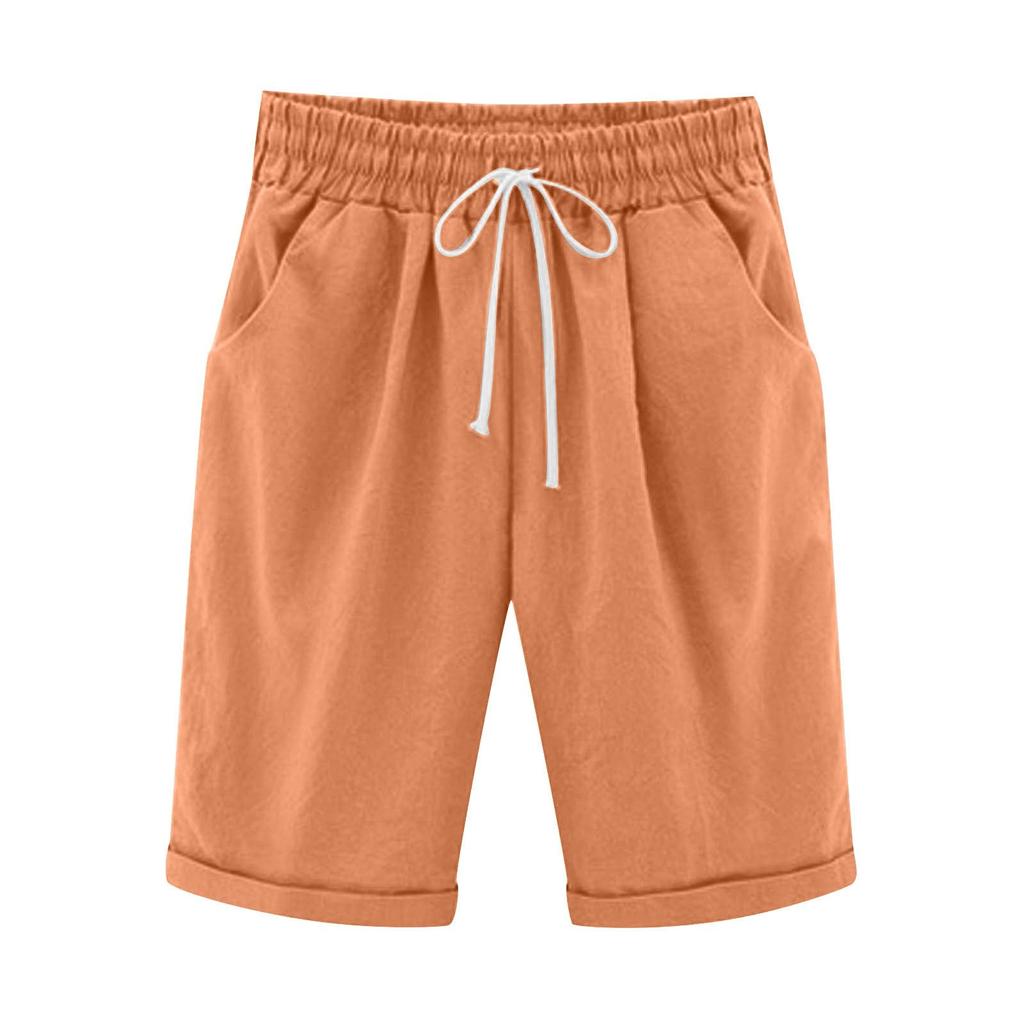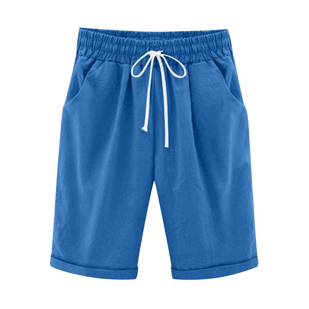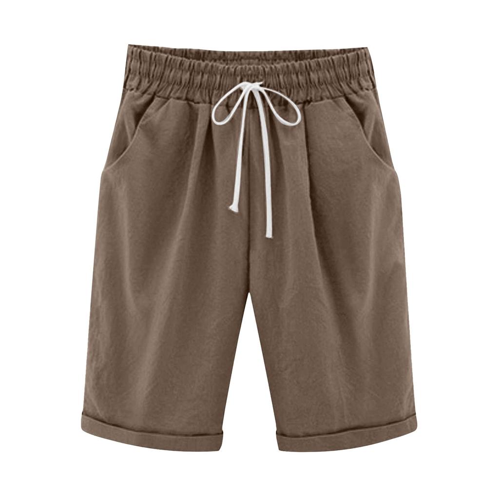 Женские повседневные свободные пляжные брюки, однотонные свободные повседневные пятые брюки, льняные шорты с карманами