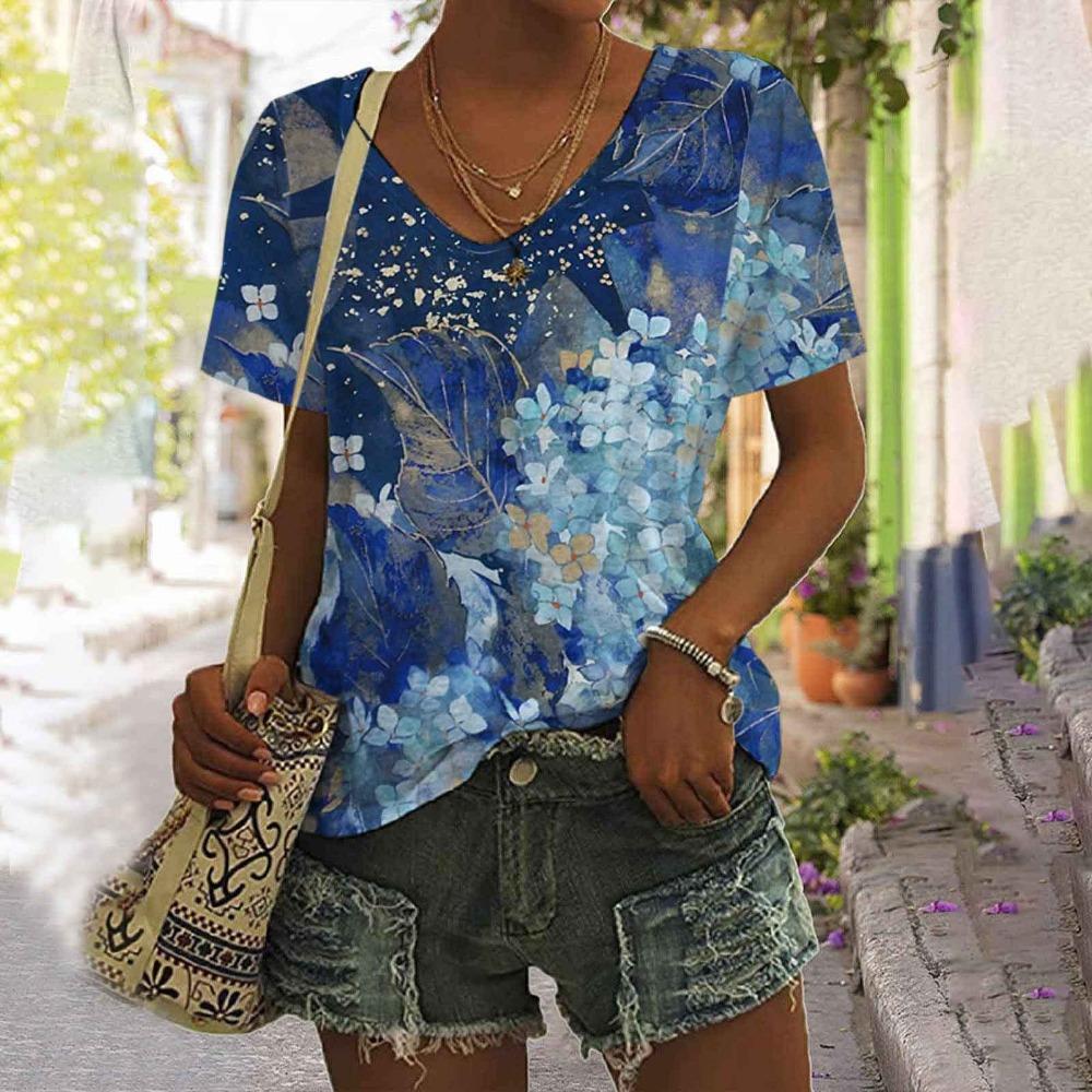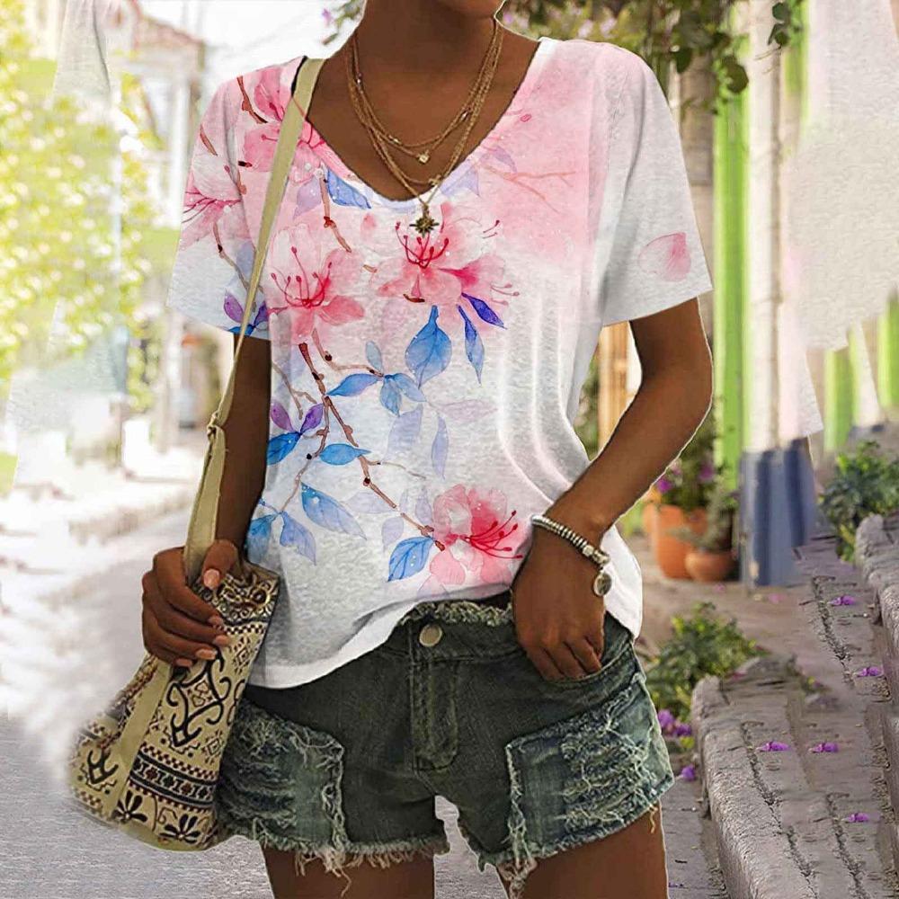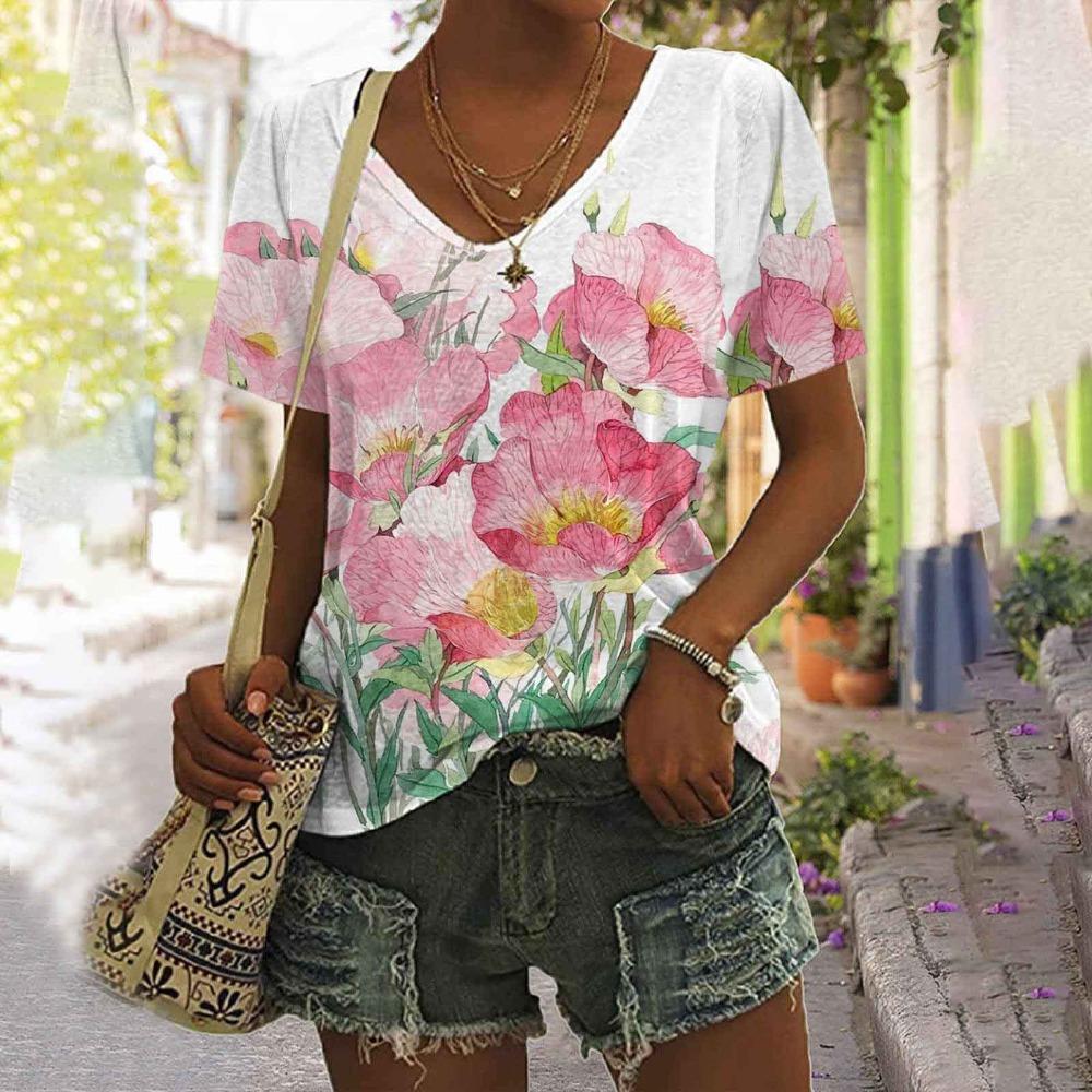 Винтажные цветочные 3D-принты футболки для женщин футболки с V-образным вырезом и коротким рукавом футболки с цветочным принтом Y2K большие размеры Harajuku Top женская одежда
