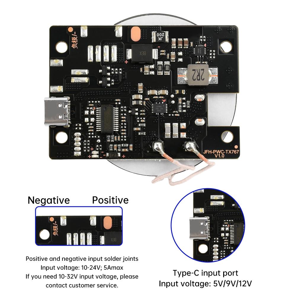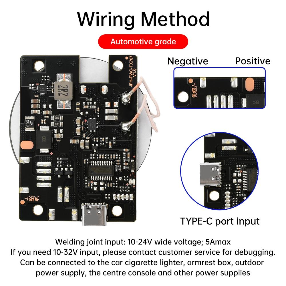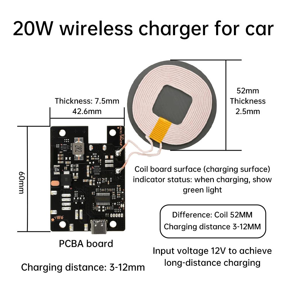 20 Вт Мощный Автомобильный Модуль Беспроводной Зарядки Мини Беспроводная Зарядная Материнская Плата 3-12 мм Тип с Воздушным Зазором Зарядка Type-C DC 10 В-24 В 5 А