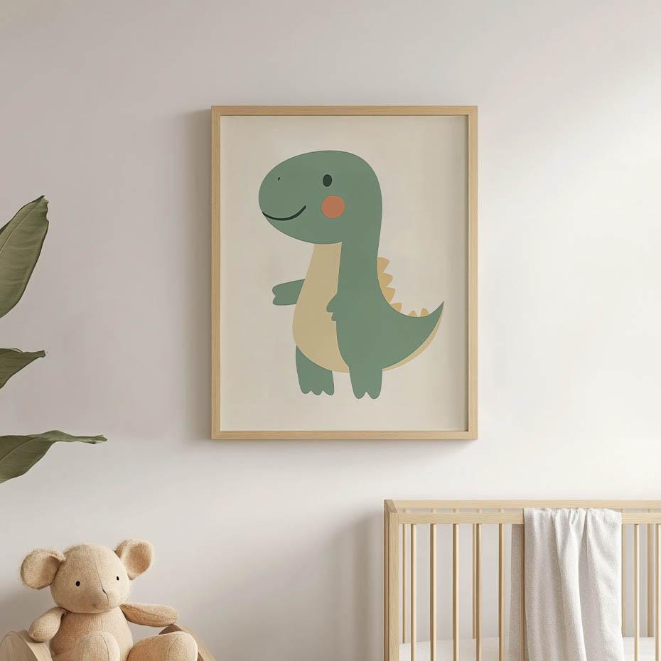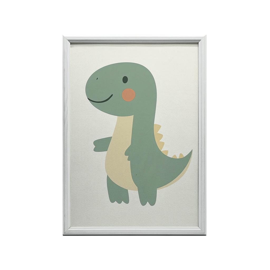 1x Plakat Uśmiechnięty Dinozaur, 30x40 cm, rama aluminiowa złota, papier matowy 230 gsm
