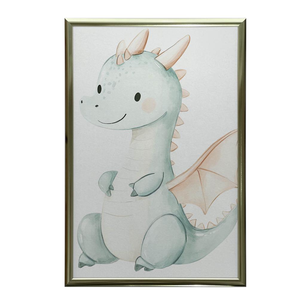 1x Plakat Uroczy niebieski smok, 40x50 cm, rama aluminiowa złota, papier matowy 230 gsm