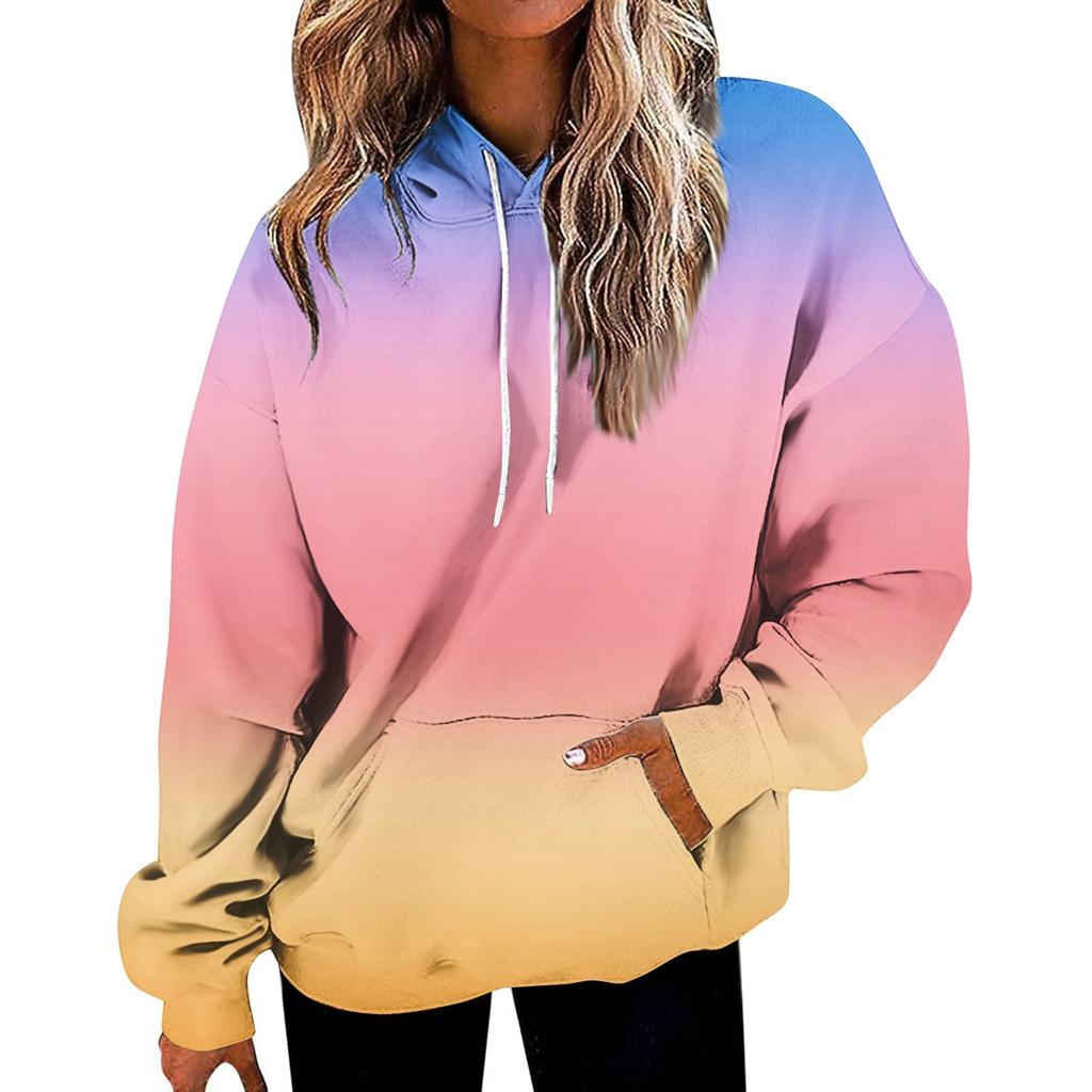 Женская мода Повседневные Универсальные Повседневные толстовки с круглым вырезом Графика Повседневные с длинным рукавом Градиент Лоскутная верхняя одежда с принтом Толстовки