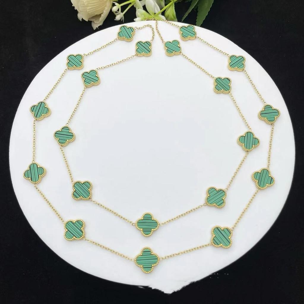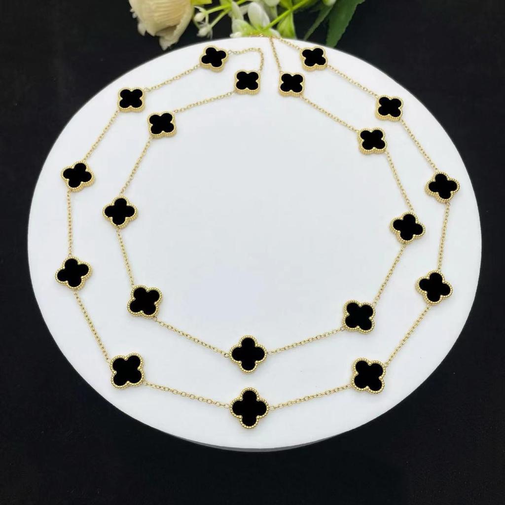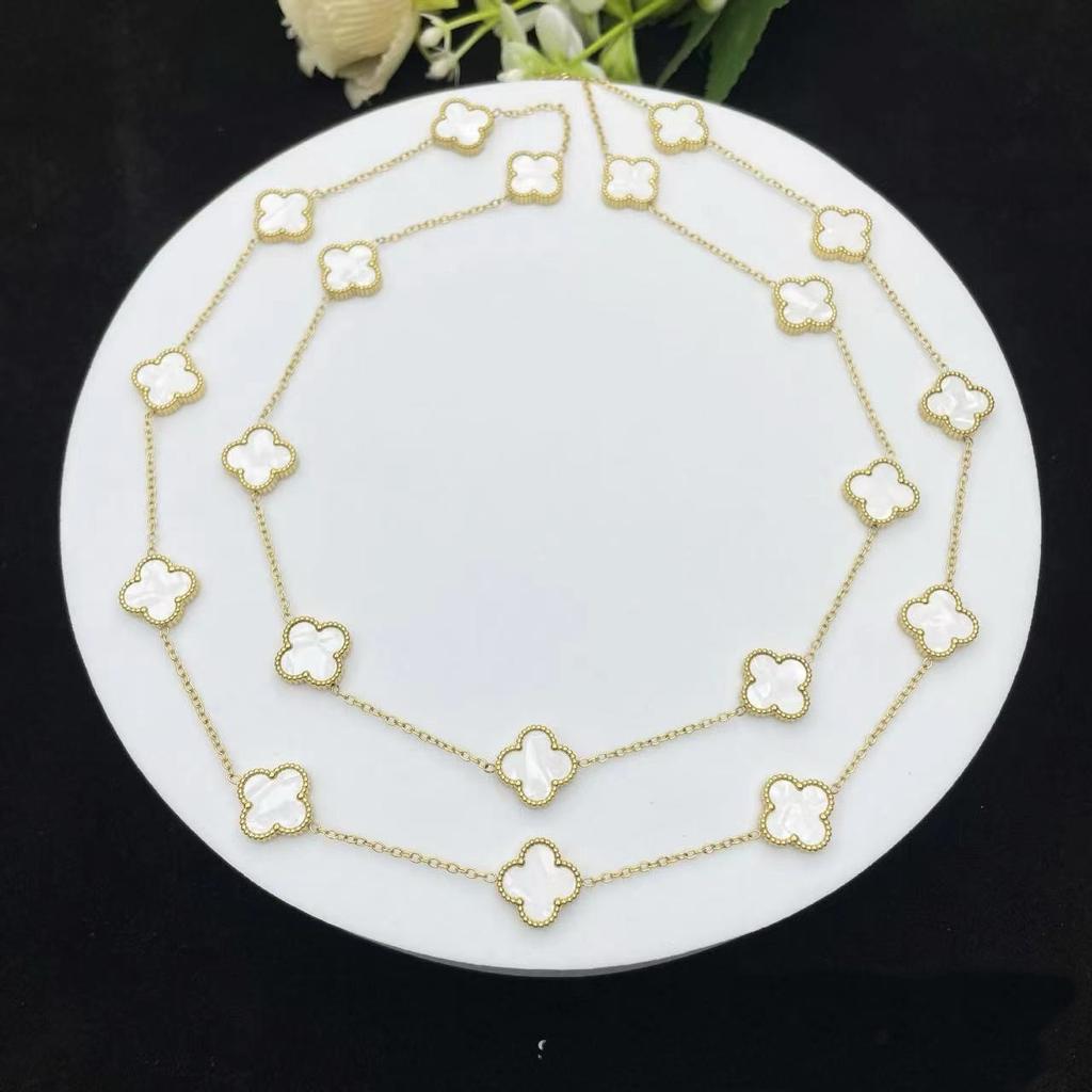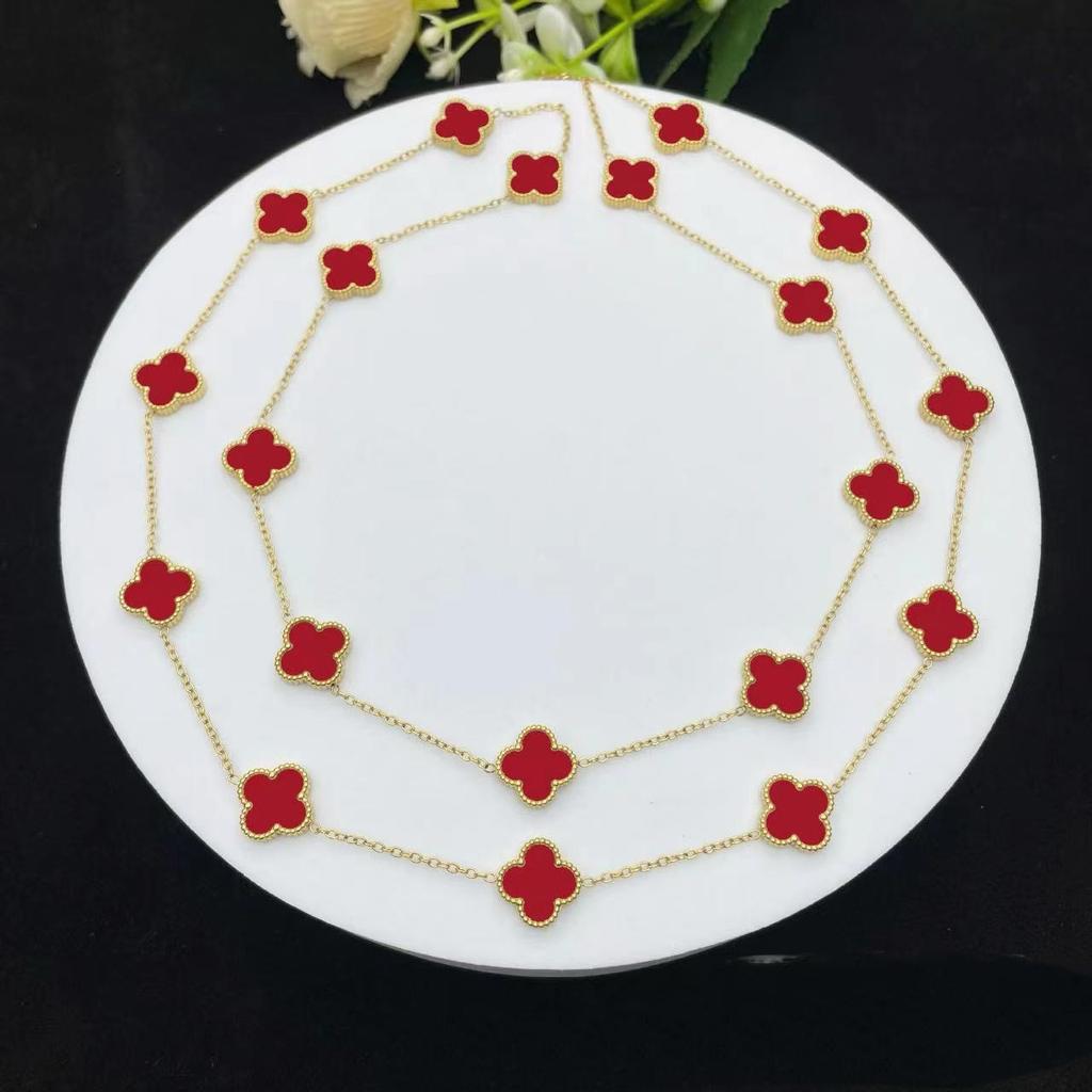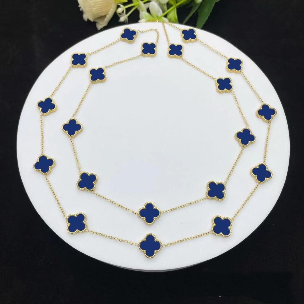 Классический стиль Двусторонний 20 цветов Четырехлистный клевер 18К Цепочка для свитера Длина 90см Легкая роскошь Высокое чувство Женское ожерелье