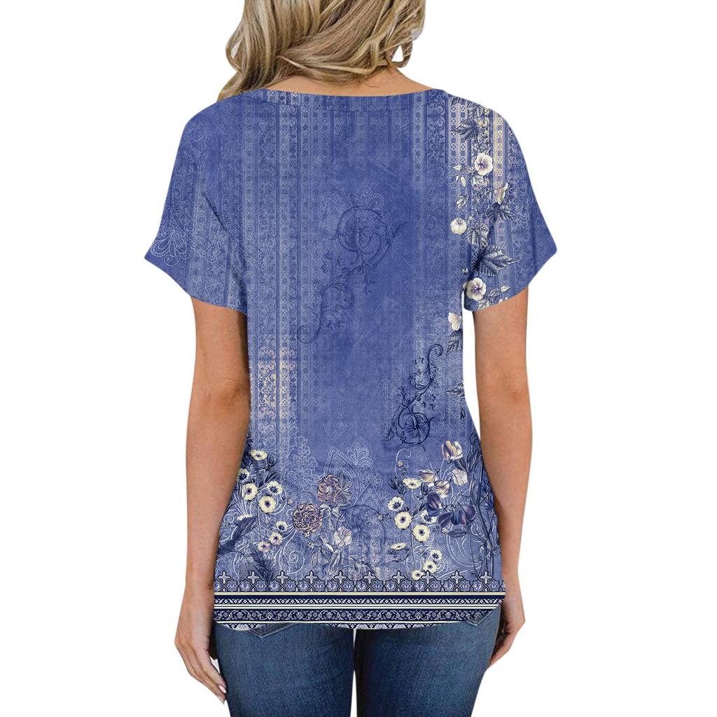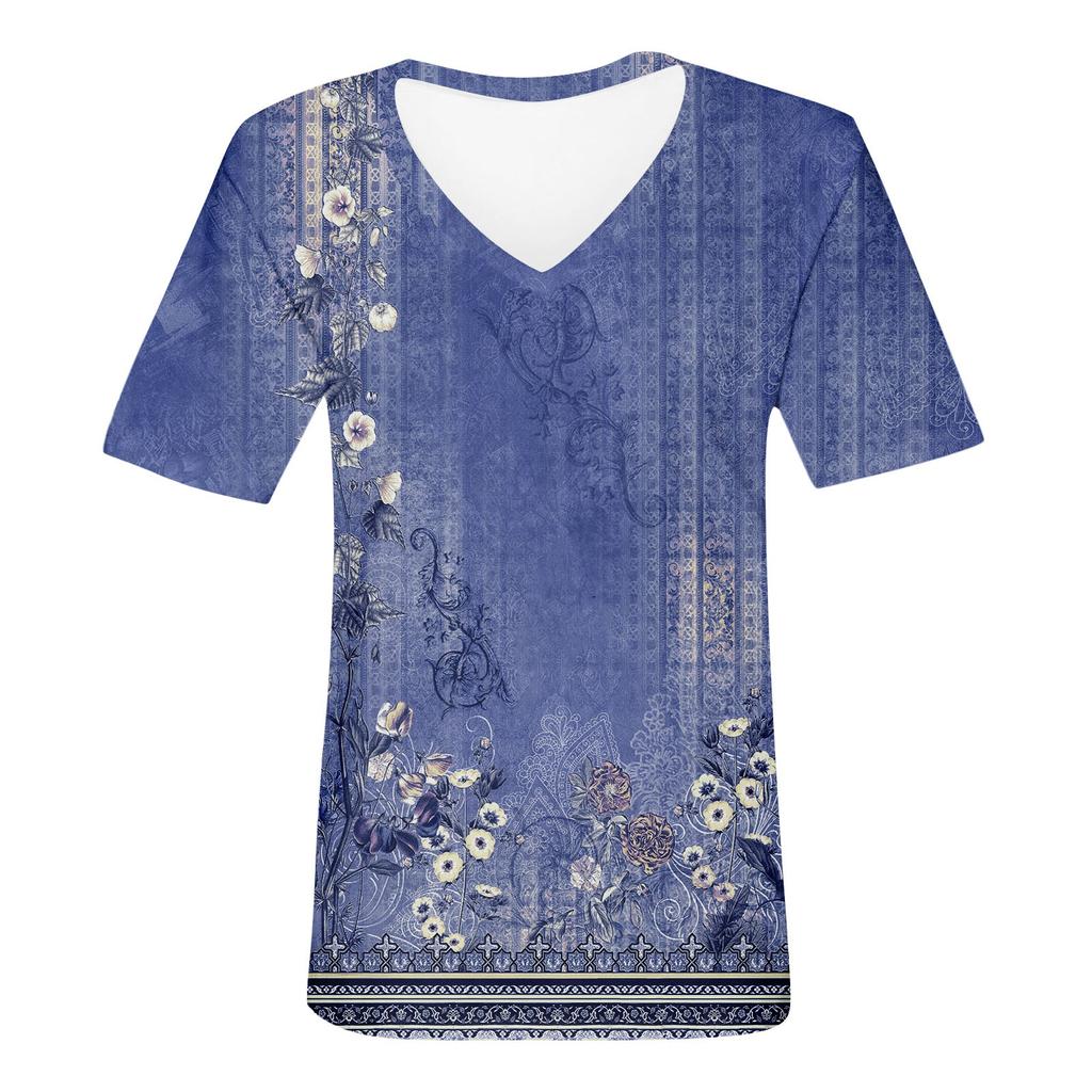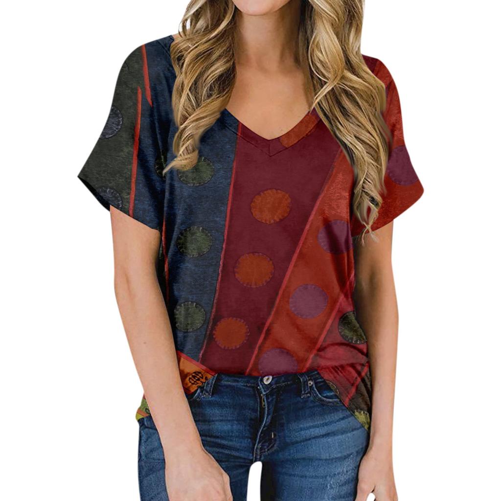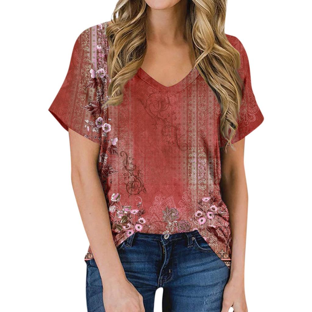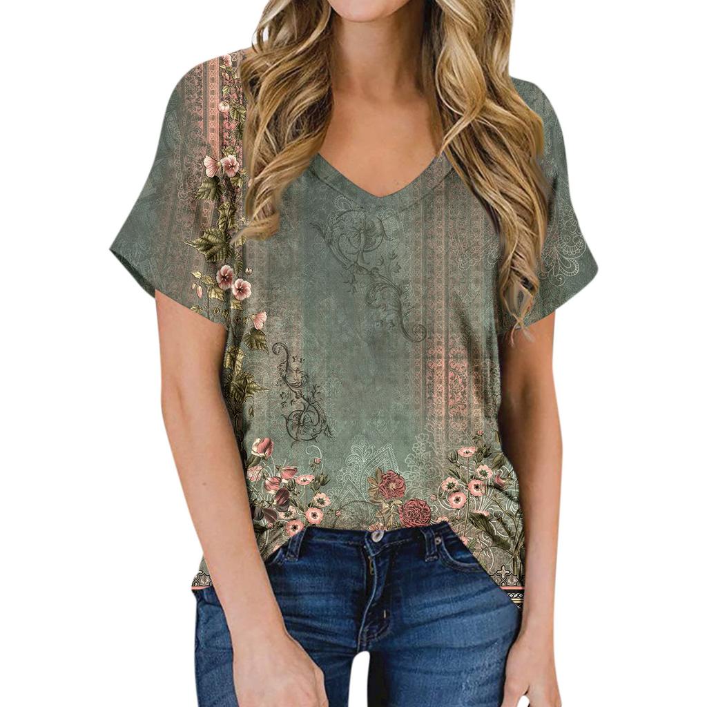 Женская летняя модная повседневная блузка с V-образным вырезом и коротким рукавом с принтом