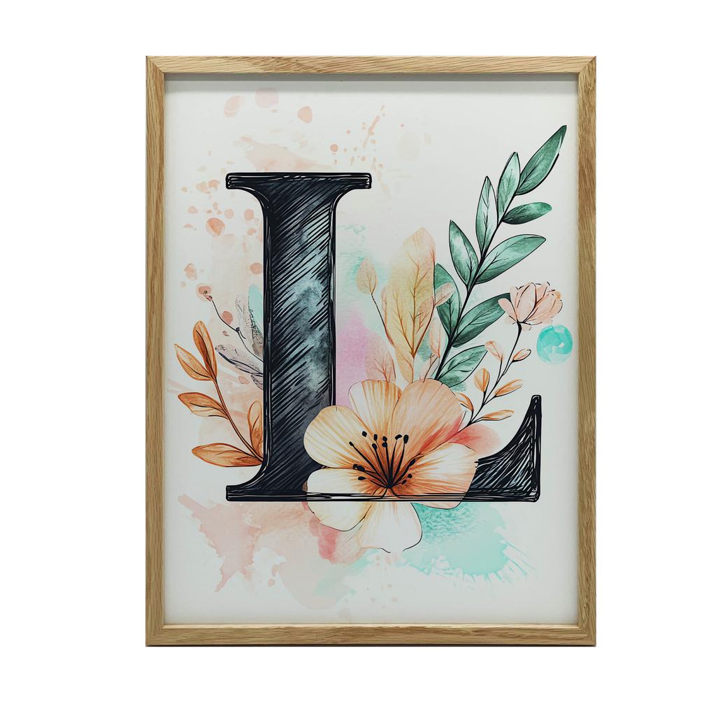 1x Plakat Litera ""L"" w Kwiatowej Kompozycji, 40x50 cm, rama aluminiowa złota, papier matowy 230 gsm