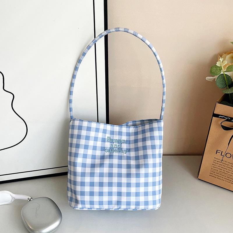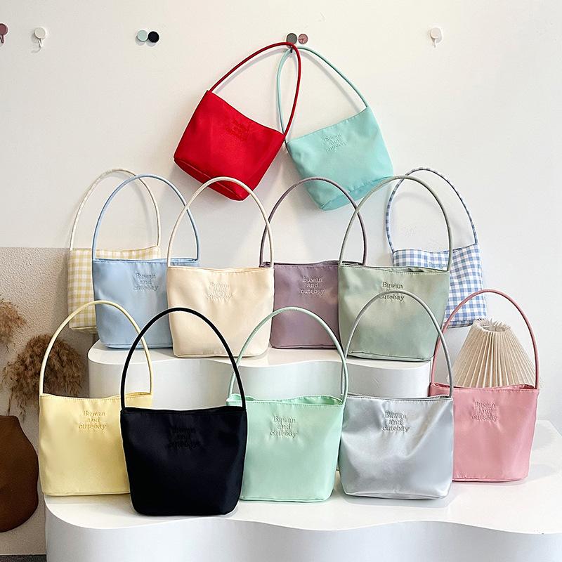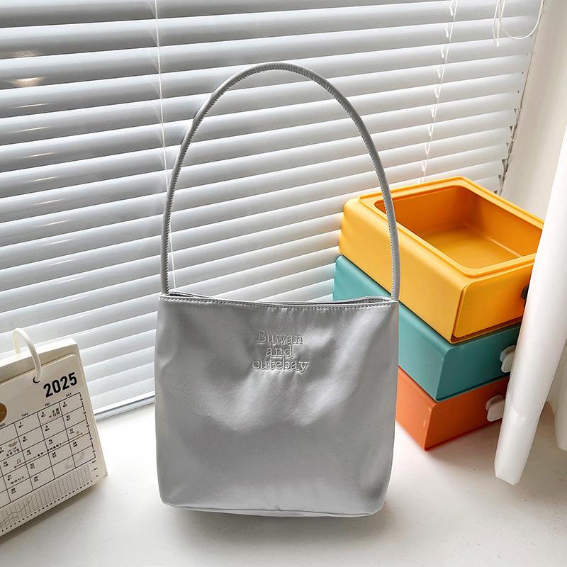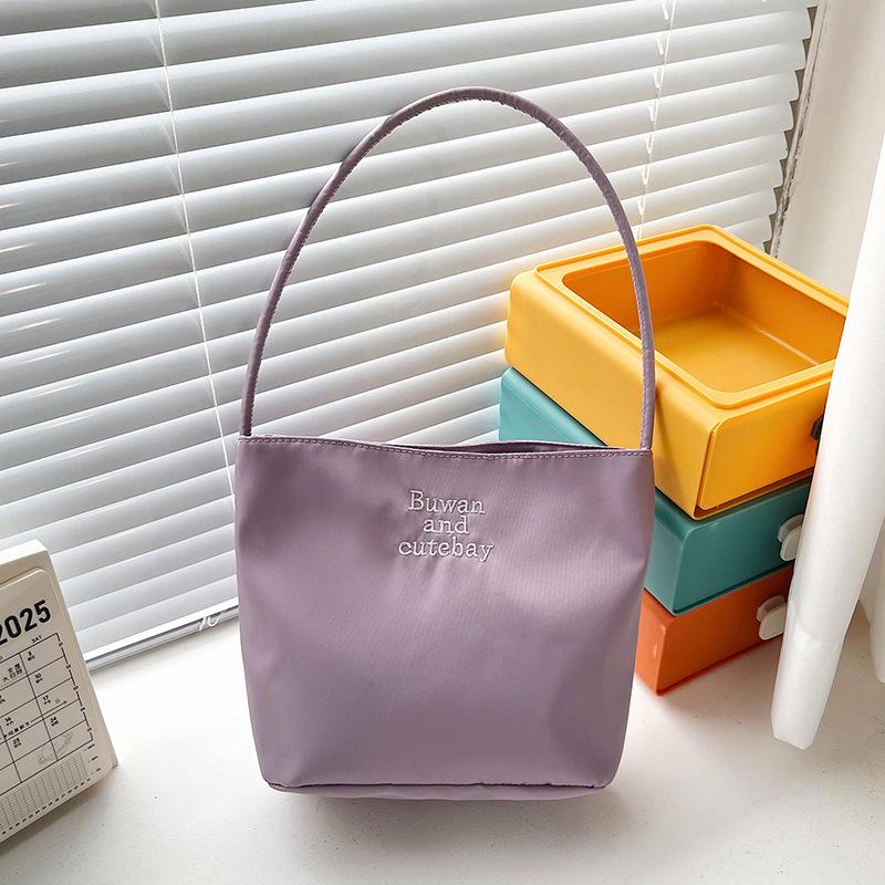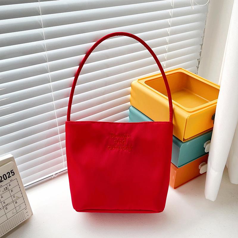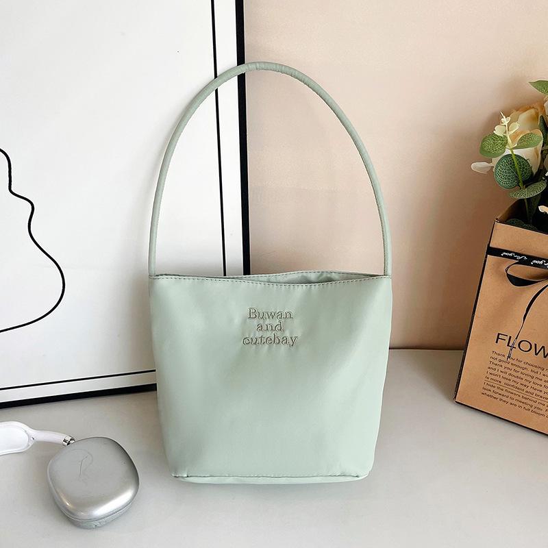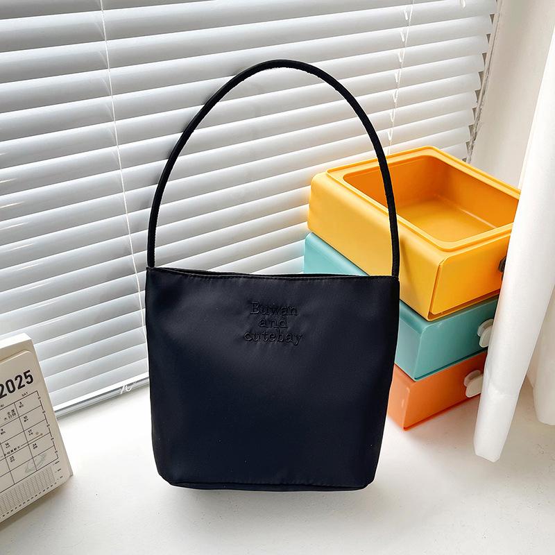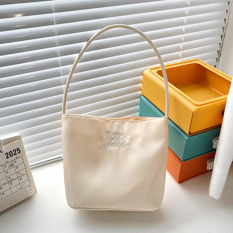 2025 летняя новая простая нейлоновая сумка подмышкой с нишевым дизайном и вышитыми буквами, переносная сумка-ведро