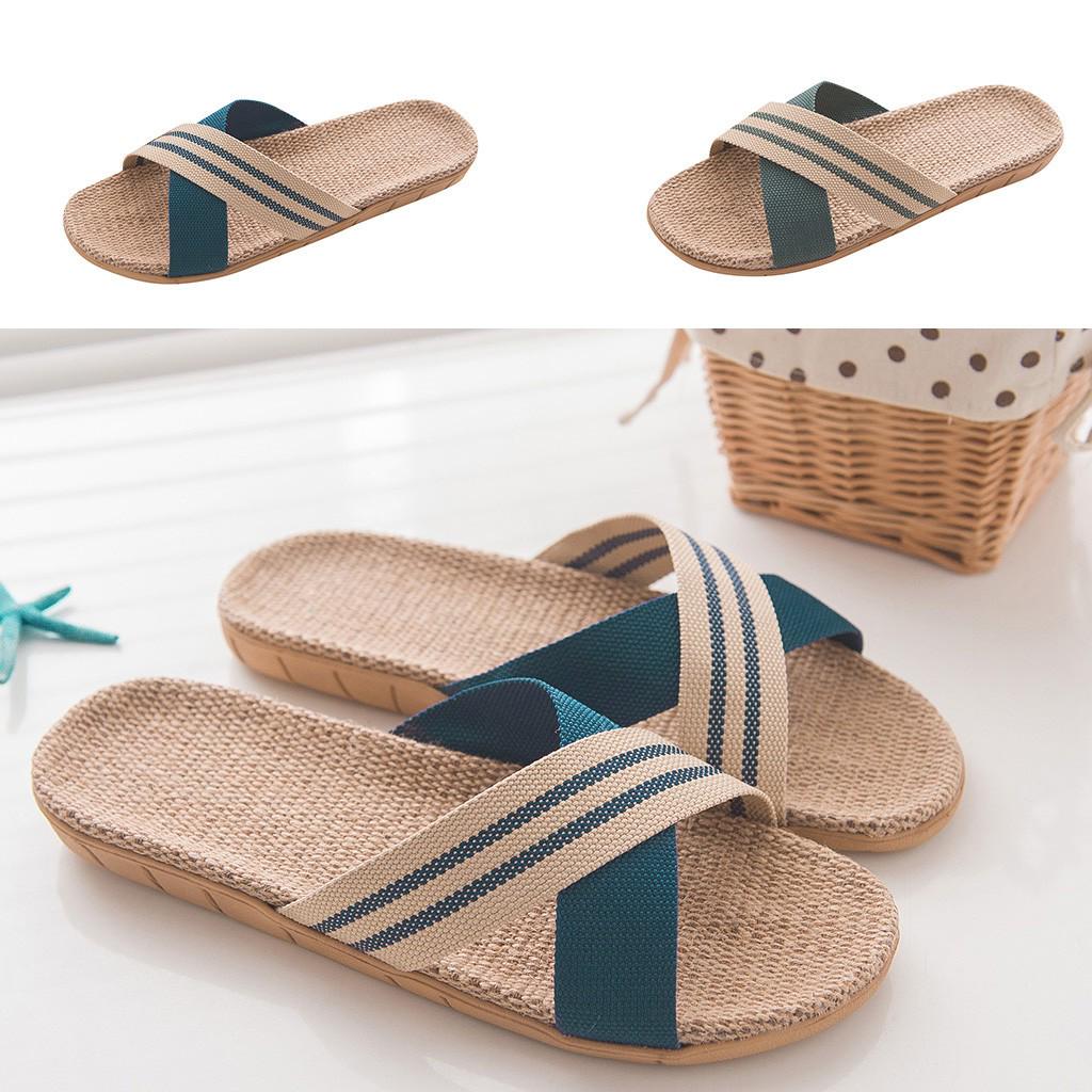 Мужские модные противоскользящие льняные домашние туфли на плоской подошве с открытым носком, пляжные тапочки — купить товар онлайн с бесплатной доставкой по всему миру!