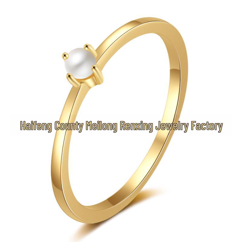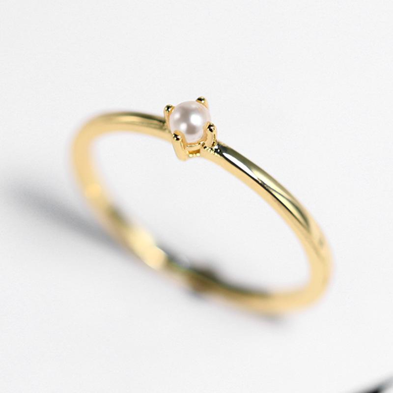 Изысканное минималистичное кольцо для женщин: Мини-планета с покрытием из 14-каратного золота и инкрустированным жемчугом