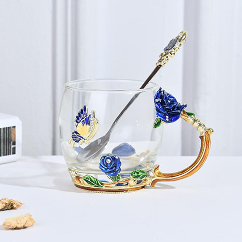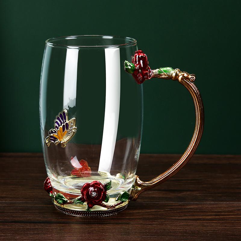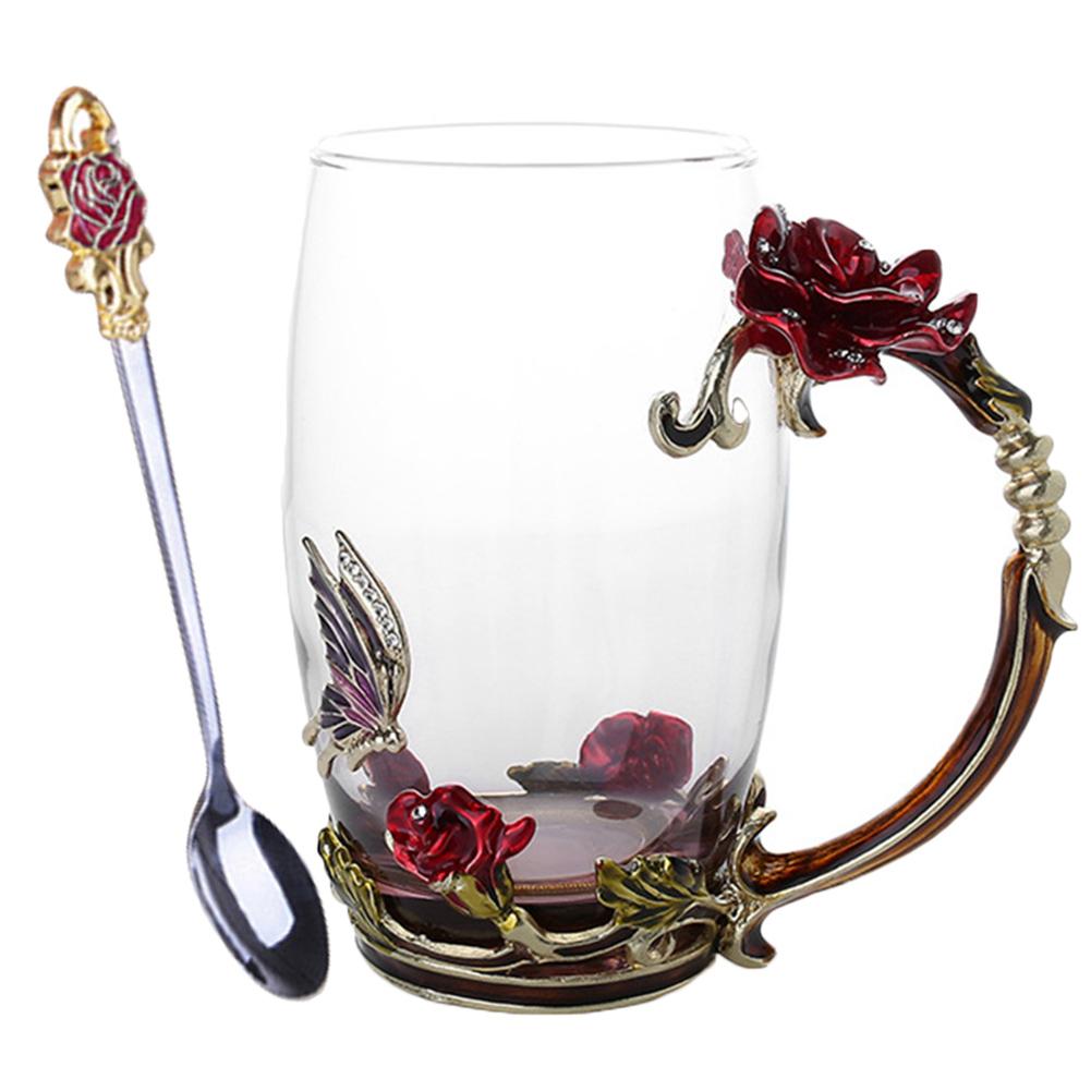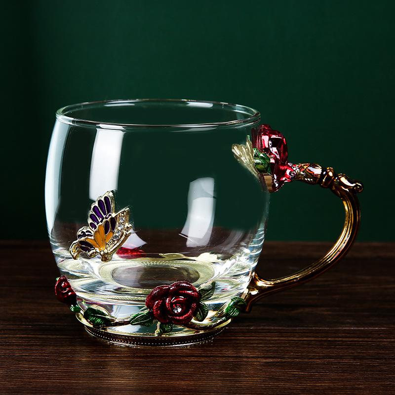 Кружка с розой Эмалевая чашка для воды Жаропрочная стеклянная чашка Эмалевая чашка для кофе и чая Кружка 3D Роза Бабочка Стеклянные чашки Свадебный подарок