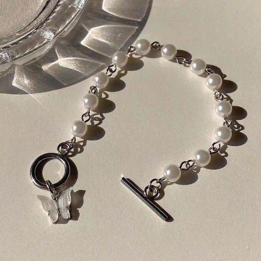 Японский и корейский браслет из жемчуга с бабочкой-феей: Элегантные, Универсальные Ретро Украшения для Женщин и Студентов