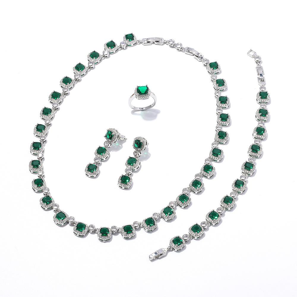 3. Комплект украшений из оливкового изумруда: В наборе использованы уникальные драгоценные камни оливково-зеленого цвета, которые искусно сочетаются с серебристым металлом и разбитыми бриллиантами благодаря изысканной инкрустации.. Общий дизайн ювелирных изделий простой и элегантный, сочетающий в себе элегантный темперамент и модное настроение, что подходит как для повседневного ношения, так и для особых случаев.