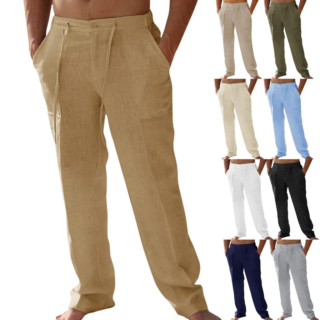 Мужские повседневные льняные брюки с заплатками и завязками, прямые, летние, пляжные, для йоги — купить товар онлайн с бесплатной доставкой по всему миру!