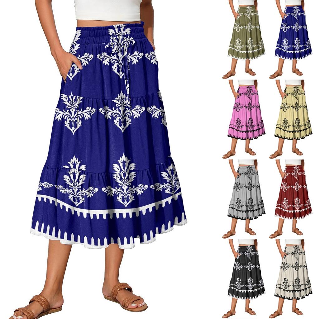 Женская юбка макси с завязками на завышенной талии, летние длинные юбки, легкие многослойные струящиеся цветочные плиссированные юбки