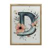 1x Plakat Litera ""B"" otoczona kolorowymi kwiatami, 30x40 cm, rama drewniana ciemny brąz, papier matowy 230 gsm