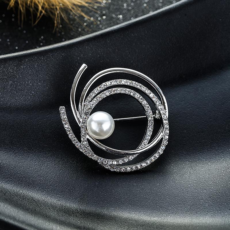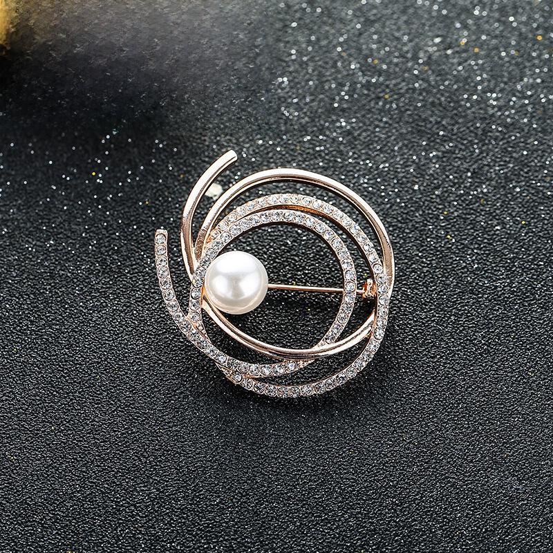 Корейская брошь с несколькими кольцами из бриллиантов и жемчуга: Универсальный модный аксессуар для женщин