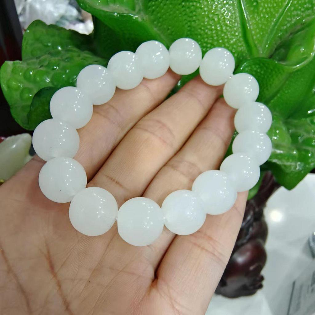 Браслет из круглых бусин из нефрита Хэтянь для мужчин и женщин