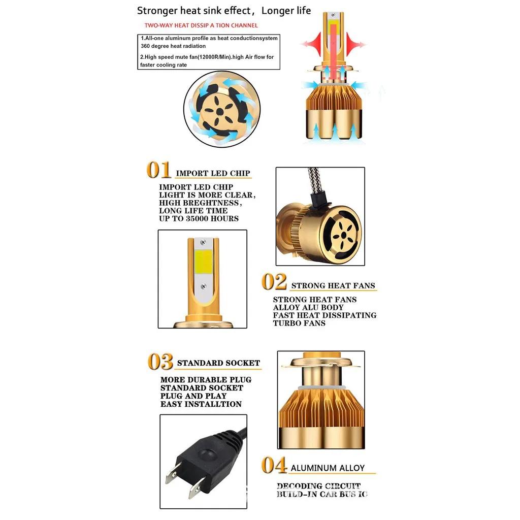 1шт трехцветный C6 автомобильный светодиодный декоративный фонарь H1 H4 H7 9005 HB3 HB4 H8 H11 дальний и ближний интегрированный передний фонарь