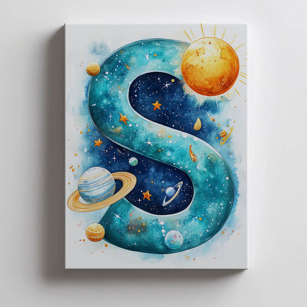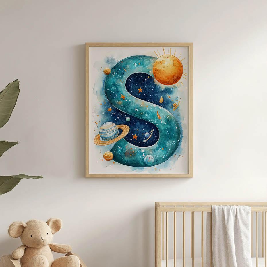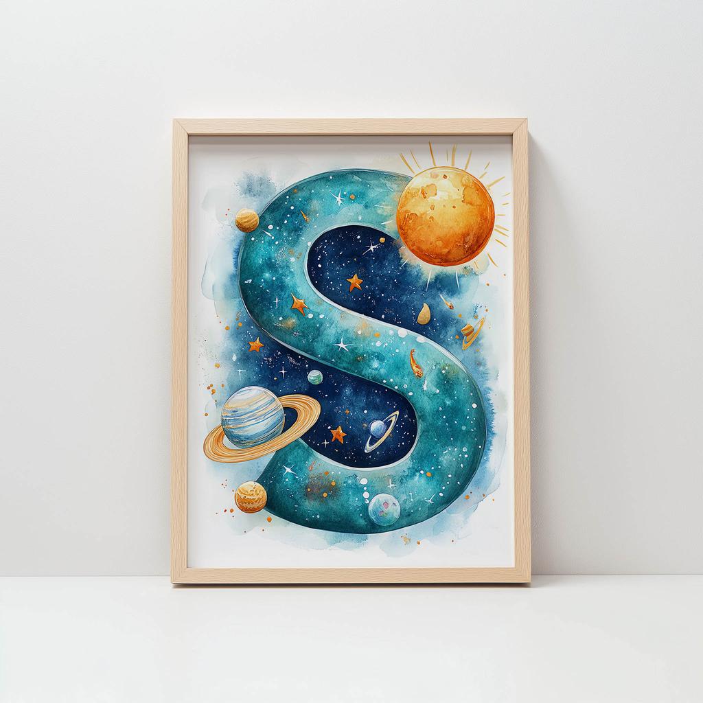Zanurz się w Kosmiczną Magię – Plakat Literka S w Kosmosie