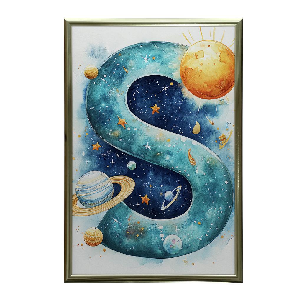 1x Plakat Literka S w kosmosie, 40x50 cm, bez ramy, papier matowy 230 gsm
