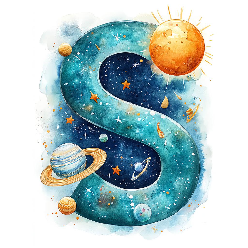 Zdobądź Swoje Miejsce w Kosmosie – Plakat Literka S w Kosmosie