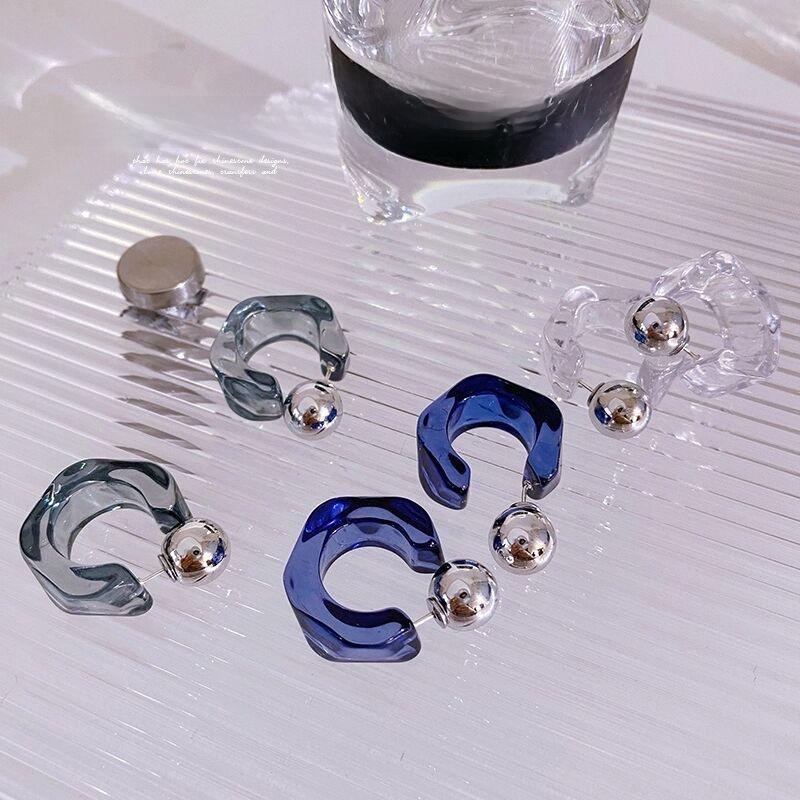 Серьги-клипсы из серебра 925 пробы в французском ретро-геометрическом стиле с акриловыми бриллиантами C-образной формы для женщин