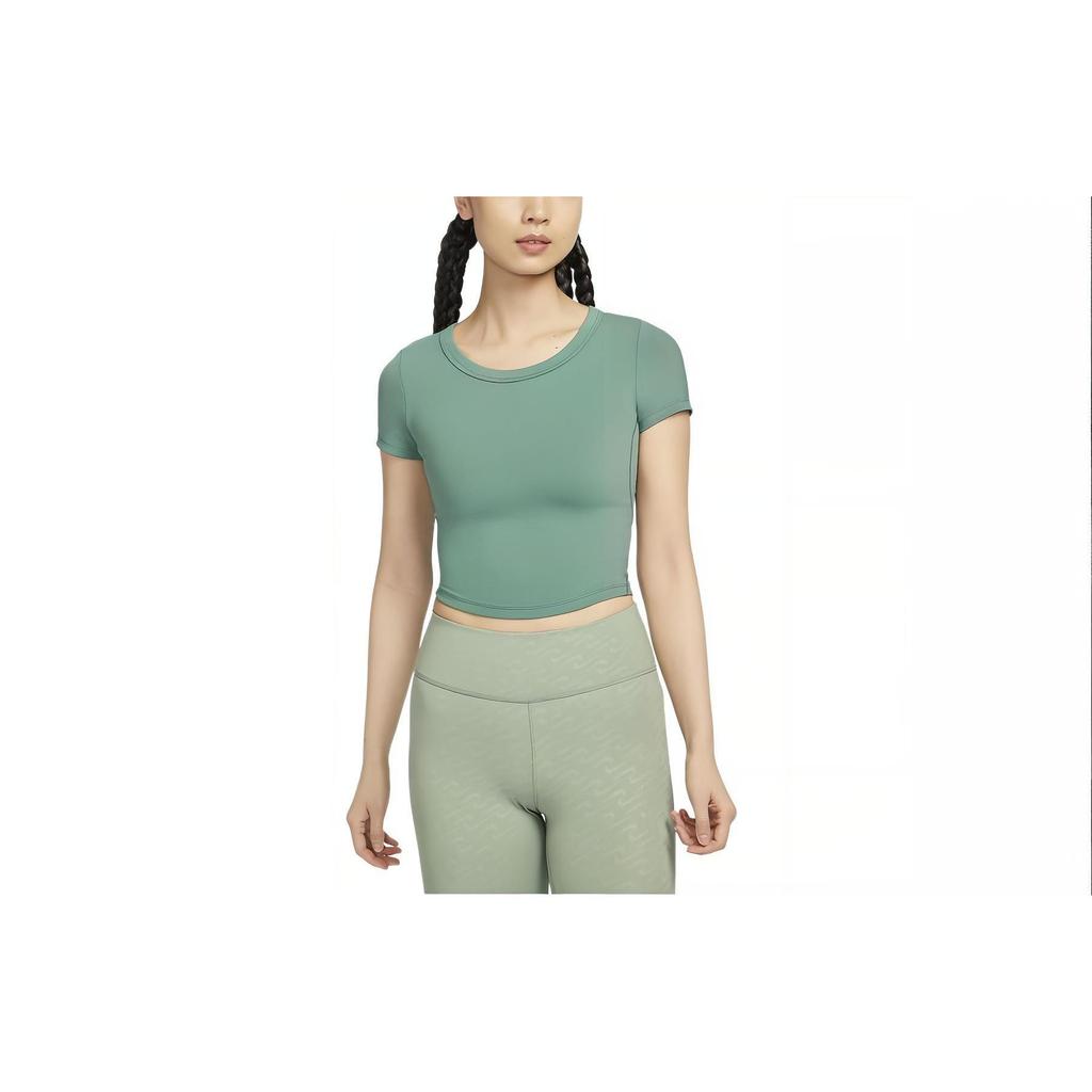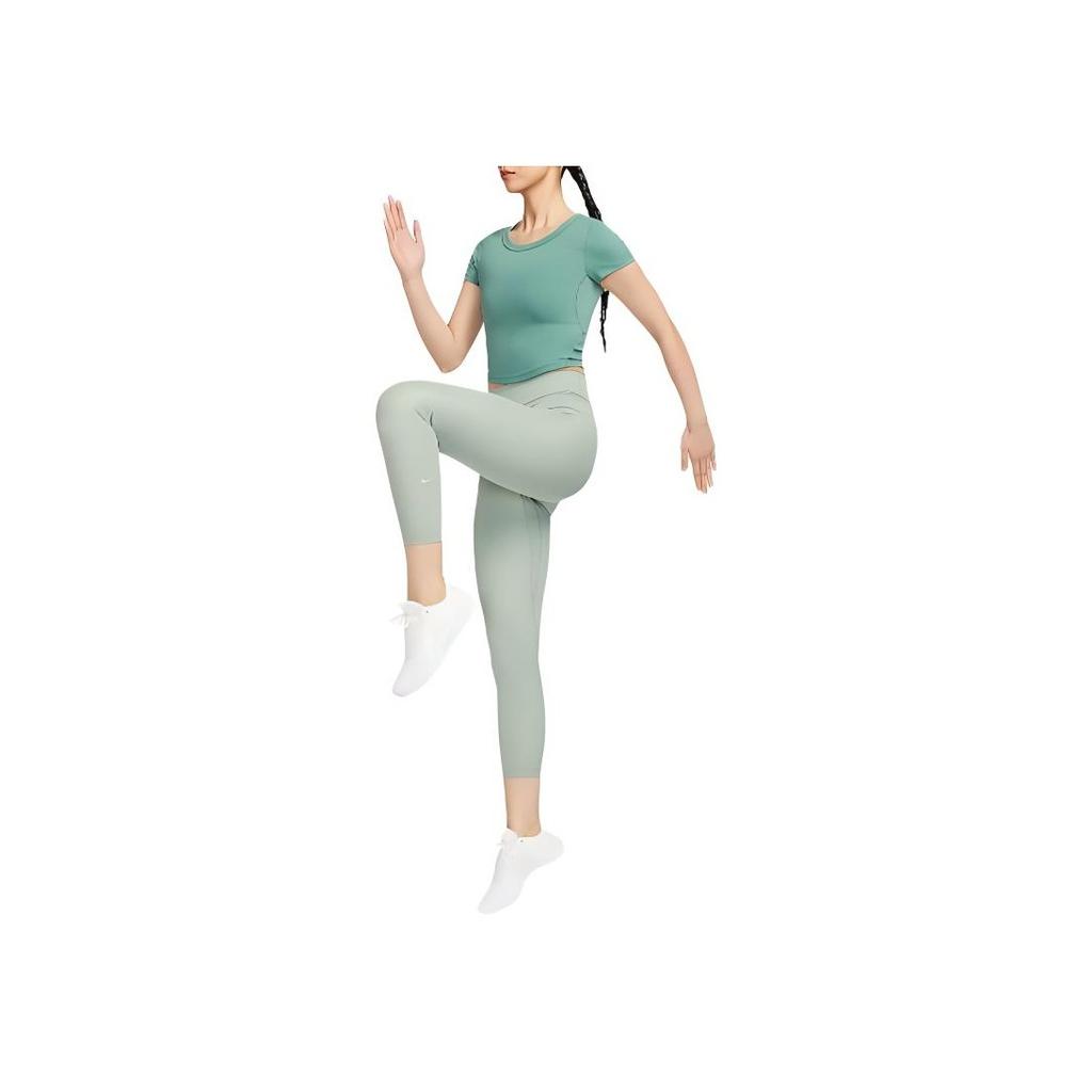 Nike Один облегающий мягкий удобный быстросохнущий топ с коротким рукавом для женщин, цвет Coastal-Blue Black FN2805-361