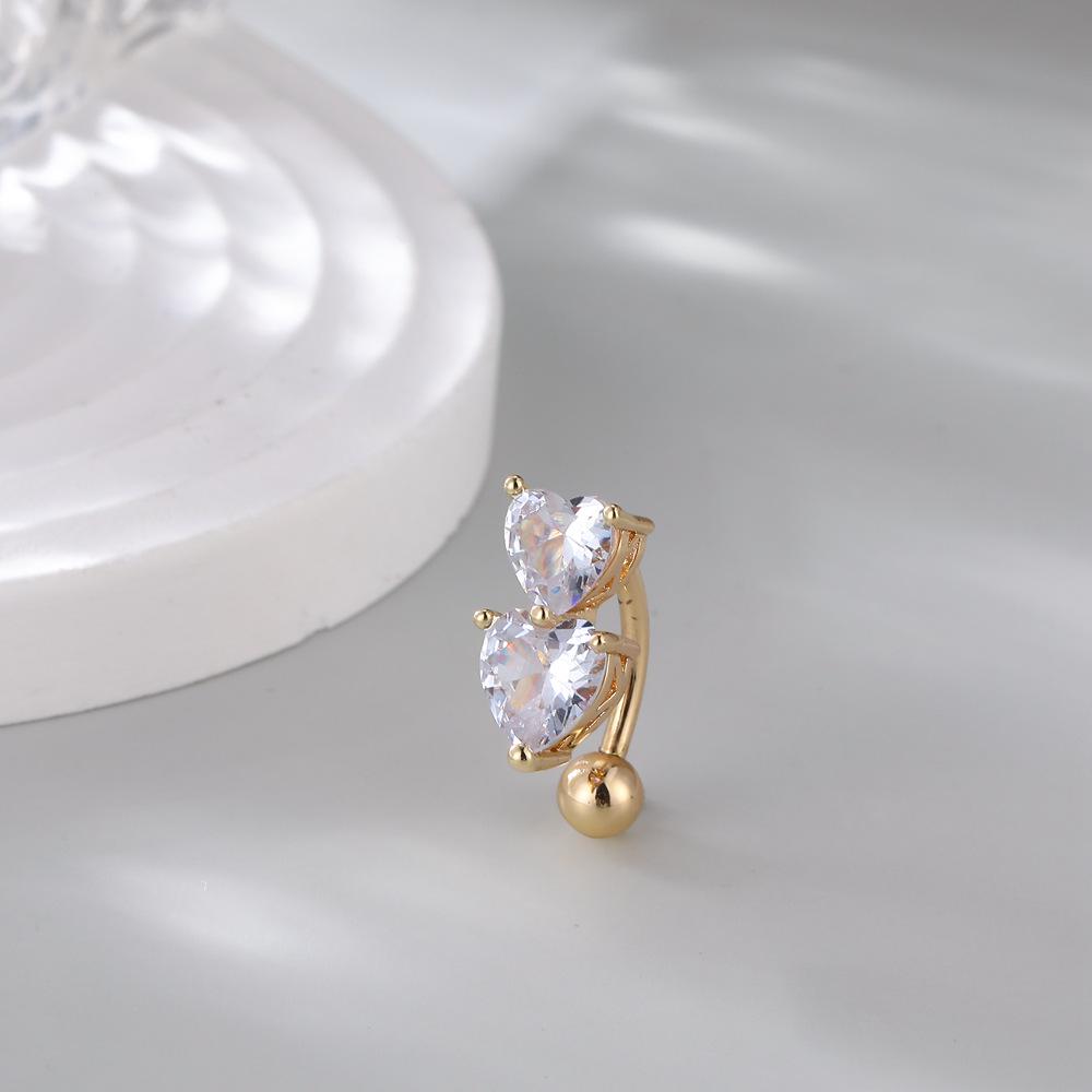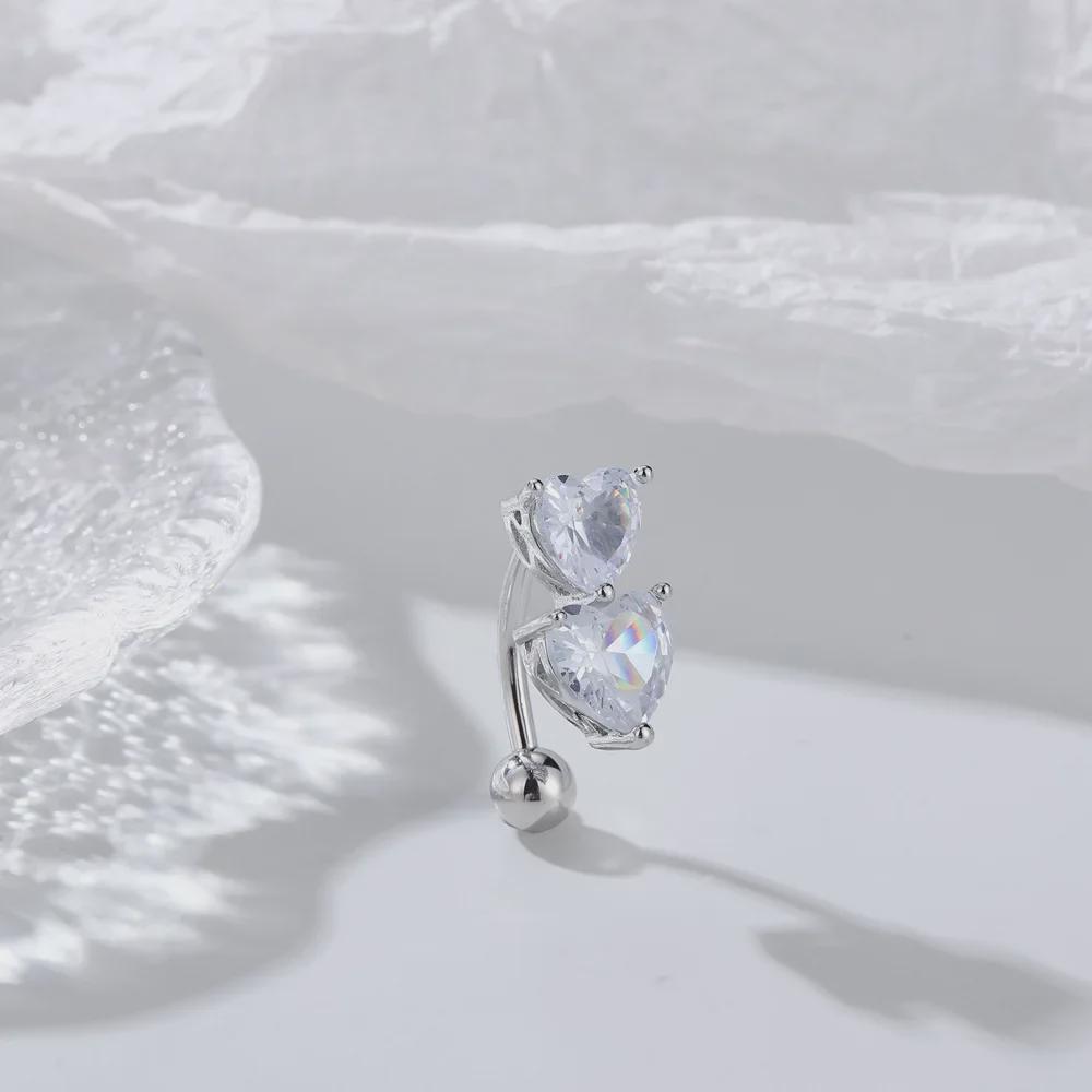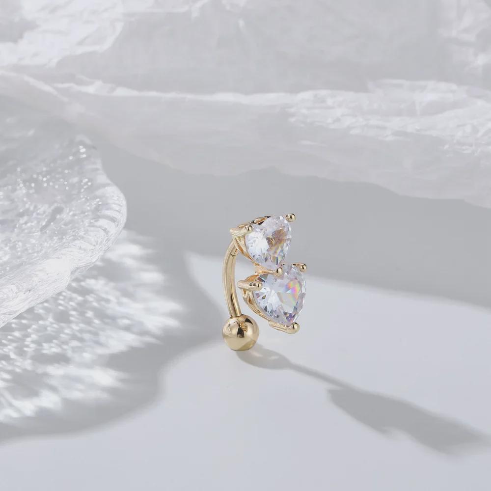 Популярный пирсинг пупка в виде двойного сердца со стразами — европейский и американский стиль