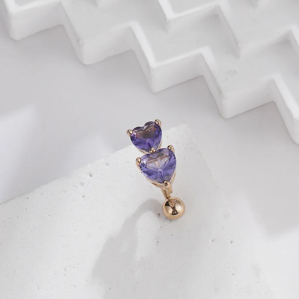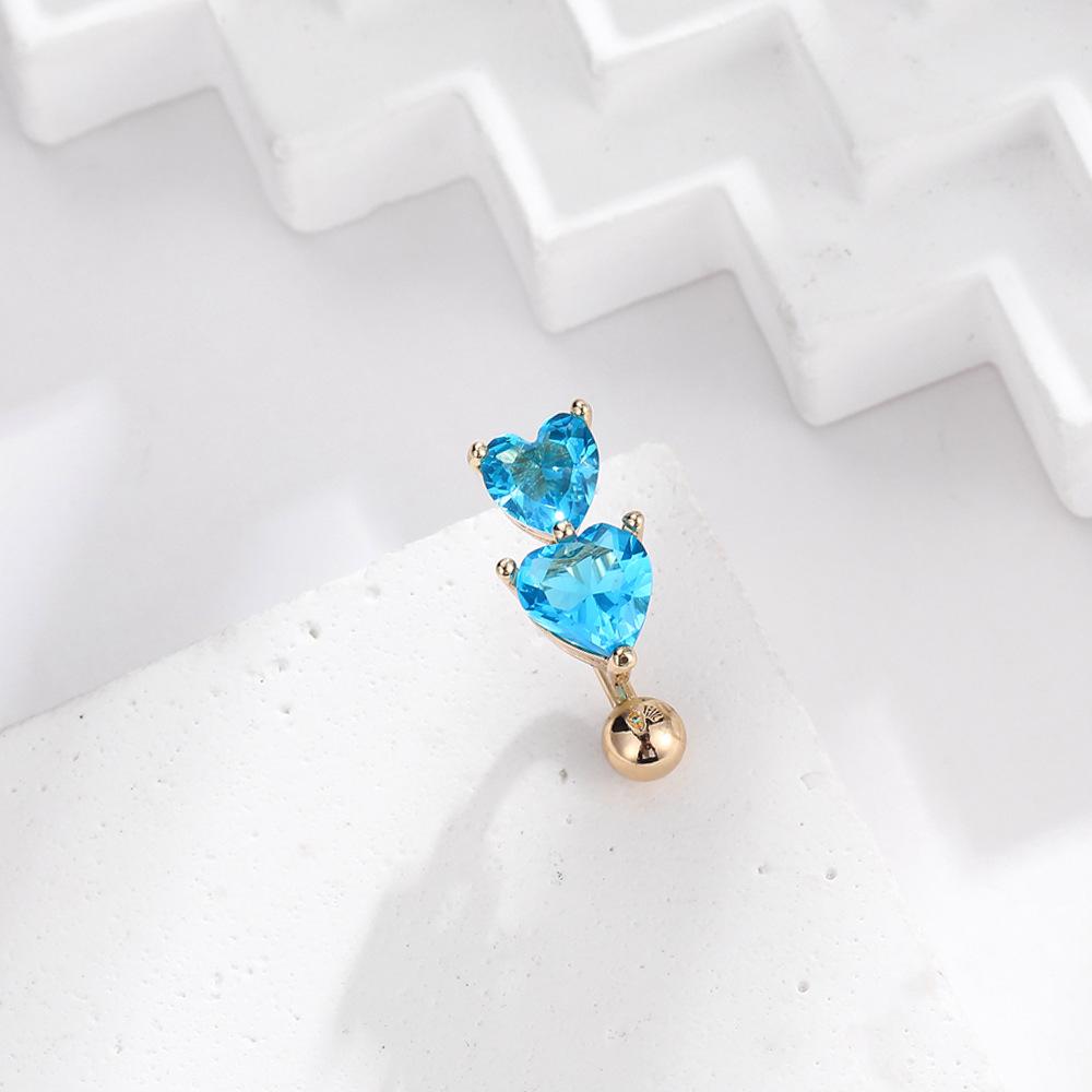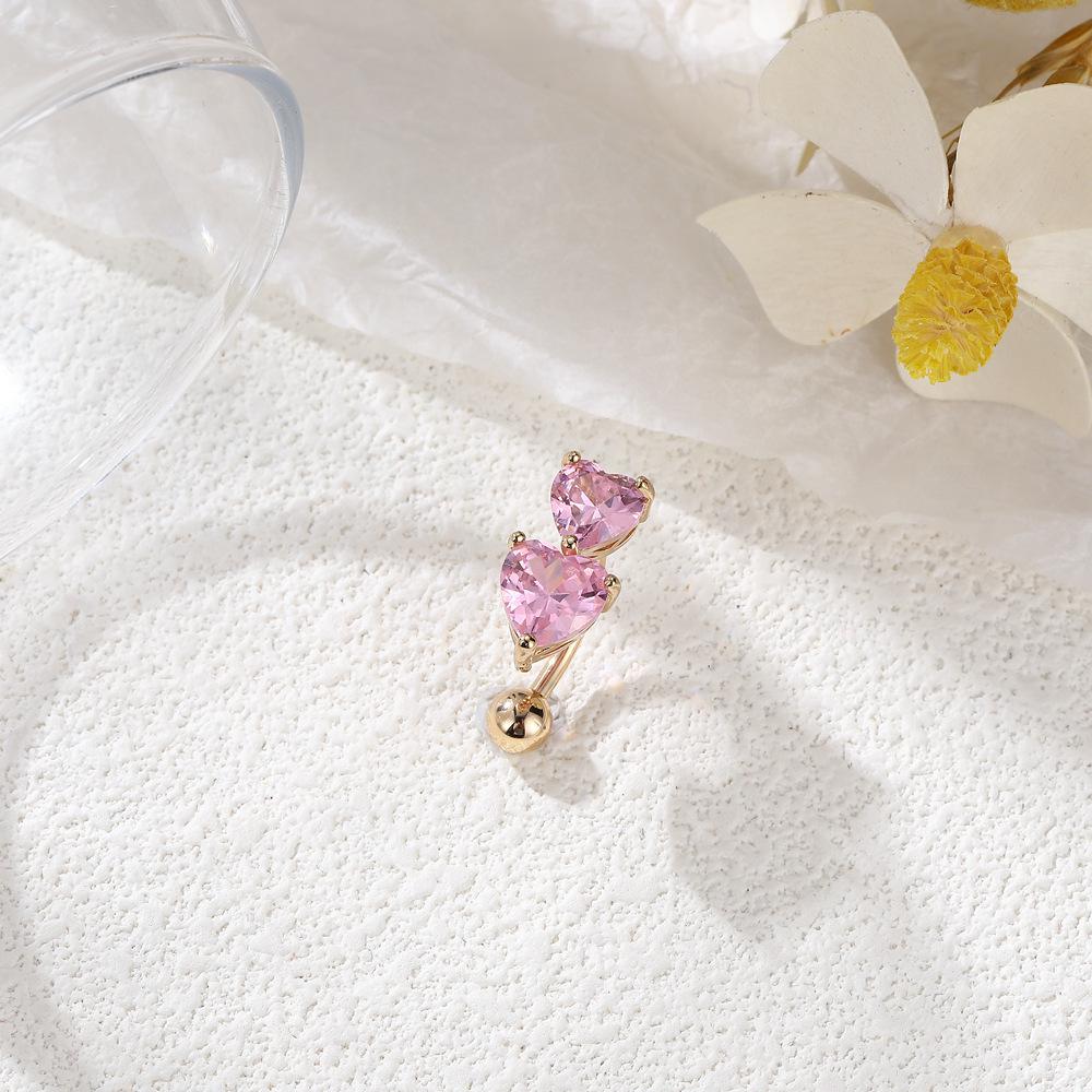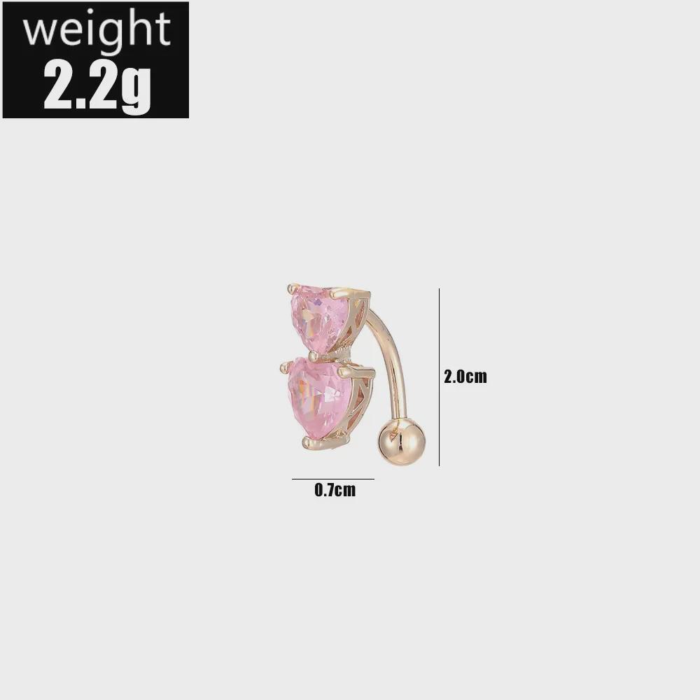 Популярный пирсинг пупка в виде двойного сердца со стразами — европейский и американский стиль