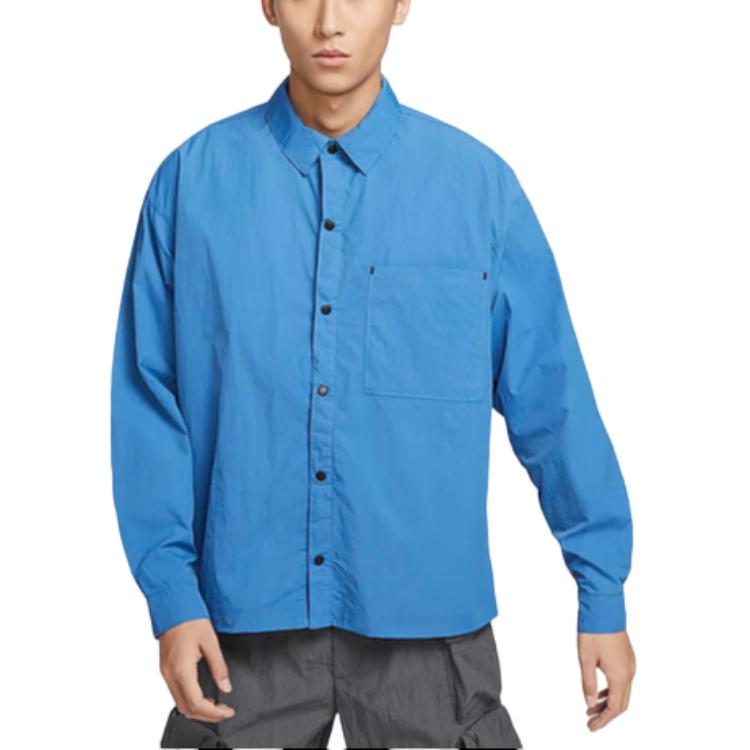 Nike SS24 Удобная спортивная повседневная тренировочная однотонная рубашка-поло с длинным рукавом Мужские рубашки синего цвета DX0206-402