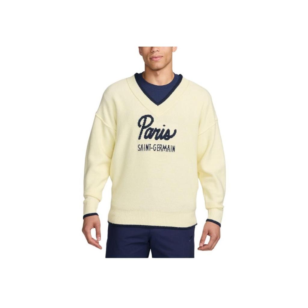 Nike Paris Saint-Germain Tech Pack Series Football Pullover V-Neck Long Sleeve Knit Top Men tops Snow-White FQ7801-744 — купить товар онлайн с бесплатной доставкой по всему миру!