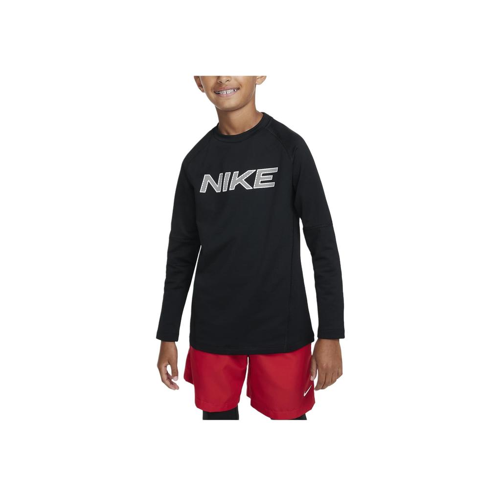 Nike Футболка Pro Dri-Fit Warm Letter Print Crew Neck Training с длинным рукавом, детские топы, цвет черный, белый HF4362-010