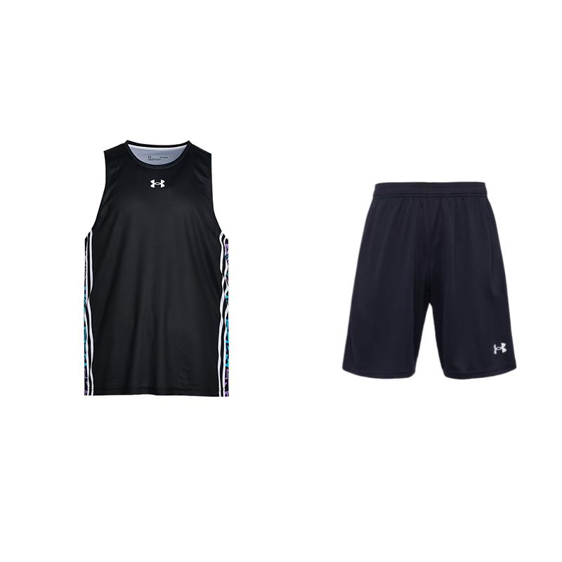 Under Armour SS24 Бег Фитнес Быстросохнущий Дышащий Майка Без Рукавов Тренировочные Шорты Повседневный Спортивный Комплект Мужские Комплекты Черный 21500201-001+24500111-001