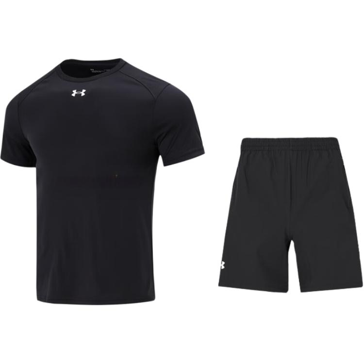 Under Armour Однотонный топ с набивным рисунком и эластичные шорты, повседневный спортивный комплект для мужчин, черный цвет 23500505-001+22500214-001