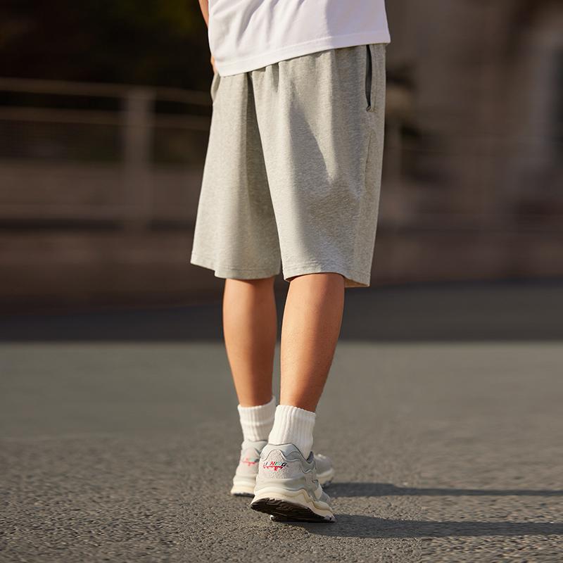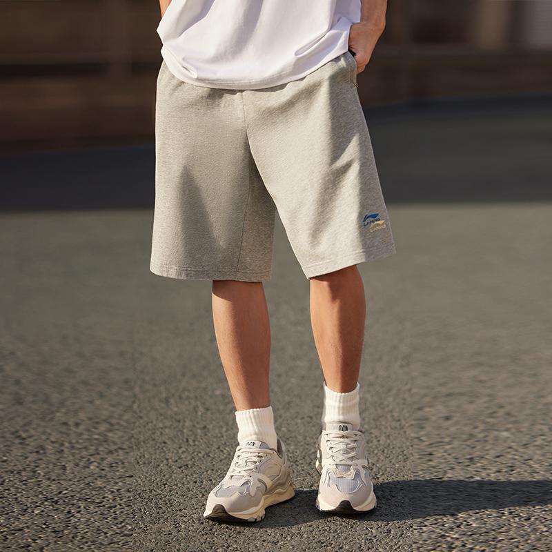 Li Ning Sports Lifestyle Series Однотонные трикотажные повседневные шорты с вышитым логотипом, мужские шорты серого цвета AKSU699-2