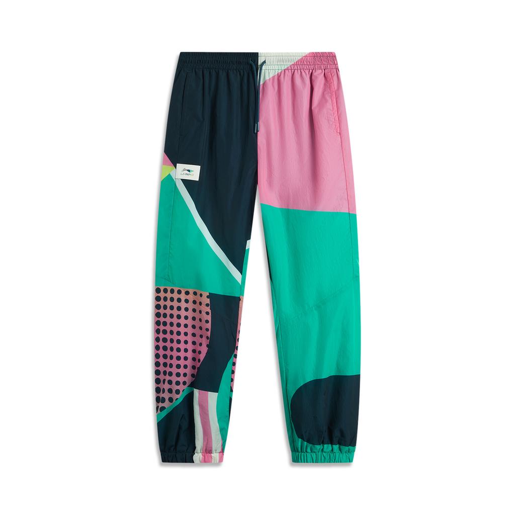 Li Ning 2024 Honor Color Block средней посадки удобные дышащие универсальные брюки-джоггеры унисекс темно-синие медно-зеленые с принтом AYKU937-2