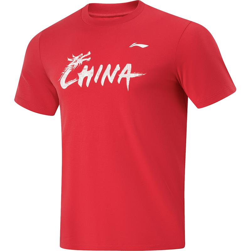 Футболка унисекс с коротким рукавом и принтом букв из серии настольного тенниса Li Ning, удобная, дышащая, цвет Bull-Red AHSU863-4