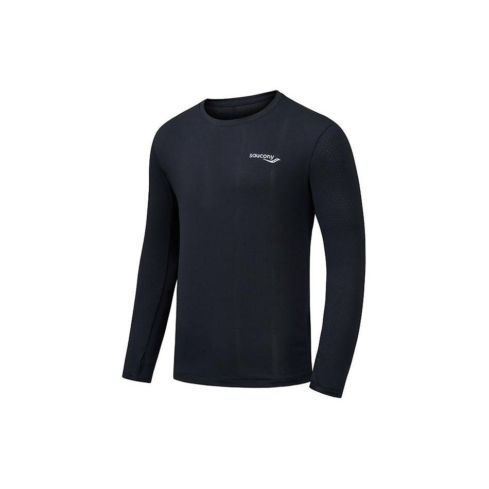 Saucony Logo Moisture-Wicking Breathable Running Knit Crew Neck Long Sleeve T-Shirt Men Tops Black SC2249047B-PR112 — купить товар онлайн с бесплатной доставкой по всему миру!