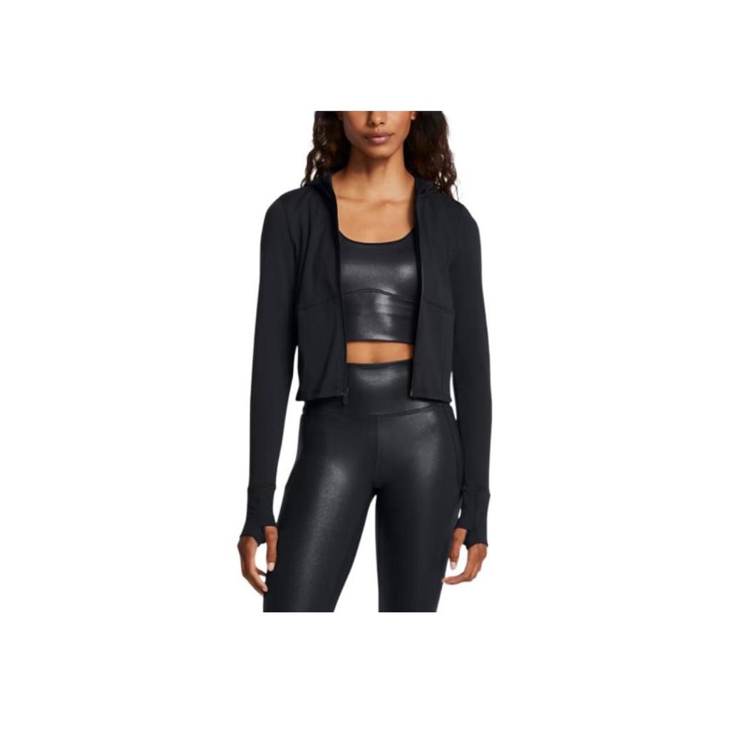 Under Armour Meridian Simple Solid Color Knitted Quick-Sohl Short Jacket Women Jacket Black 1386618-001