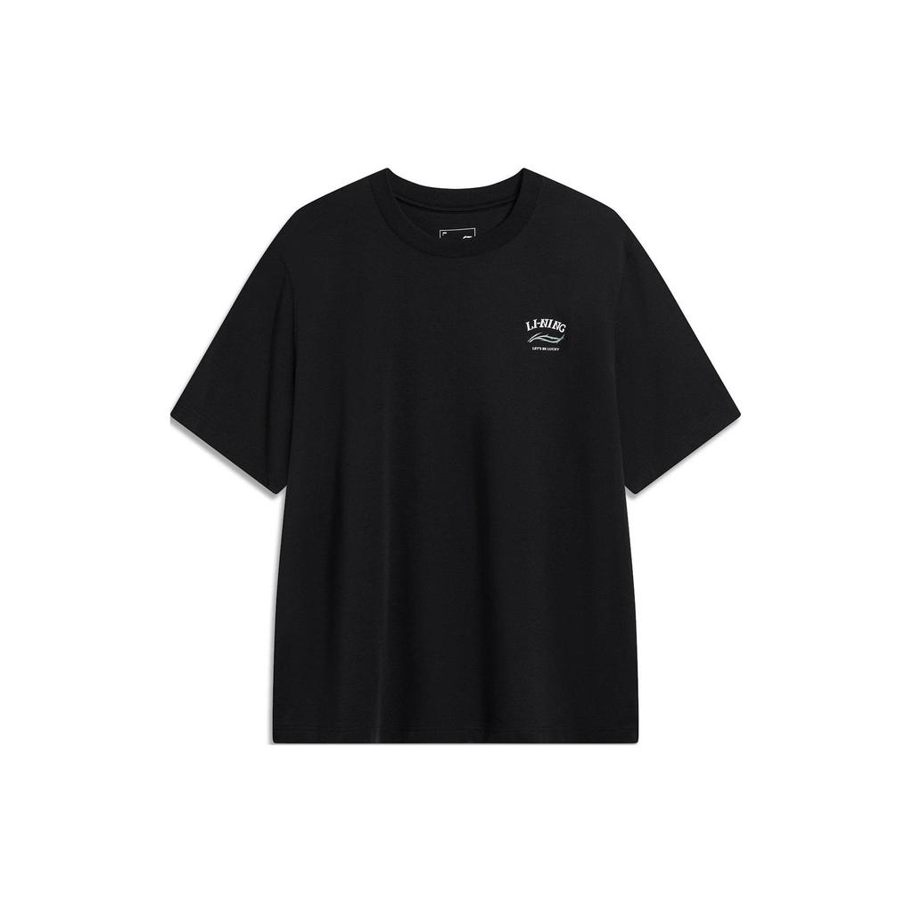 Li Ning Китайская культура Серия Письменный Принт Круглый Вырез Пуловер Удобная Футболка С Коротким Рукавом Мужские Топы Черный AHSU317-3
